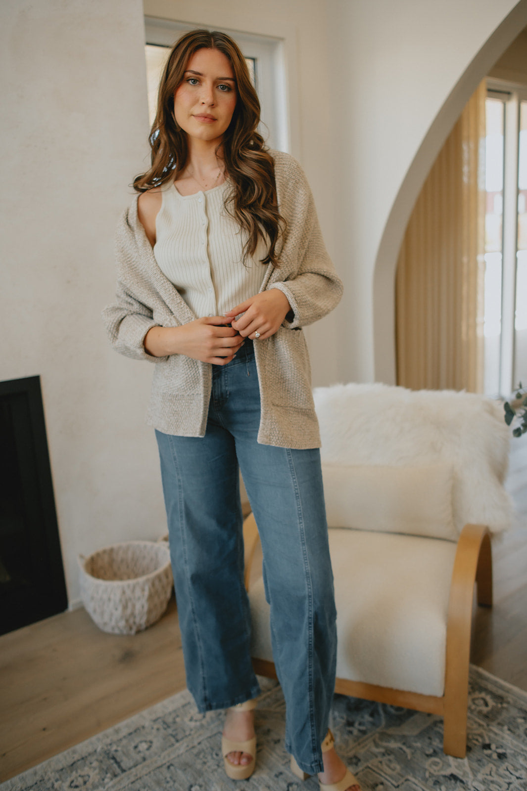 Introducing our signature design, The Erinn Cardigan! A one-of-a-kind open-front cardigan that delivers style with a generous length and roomy pockets. It looks so great around the house or while running errands, you might as well call it your take-it-everywhere sweater!