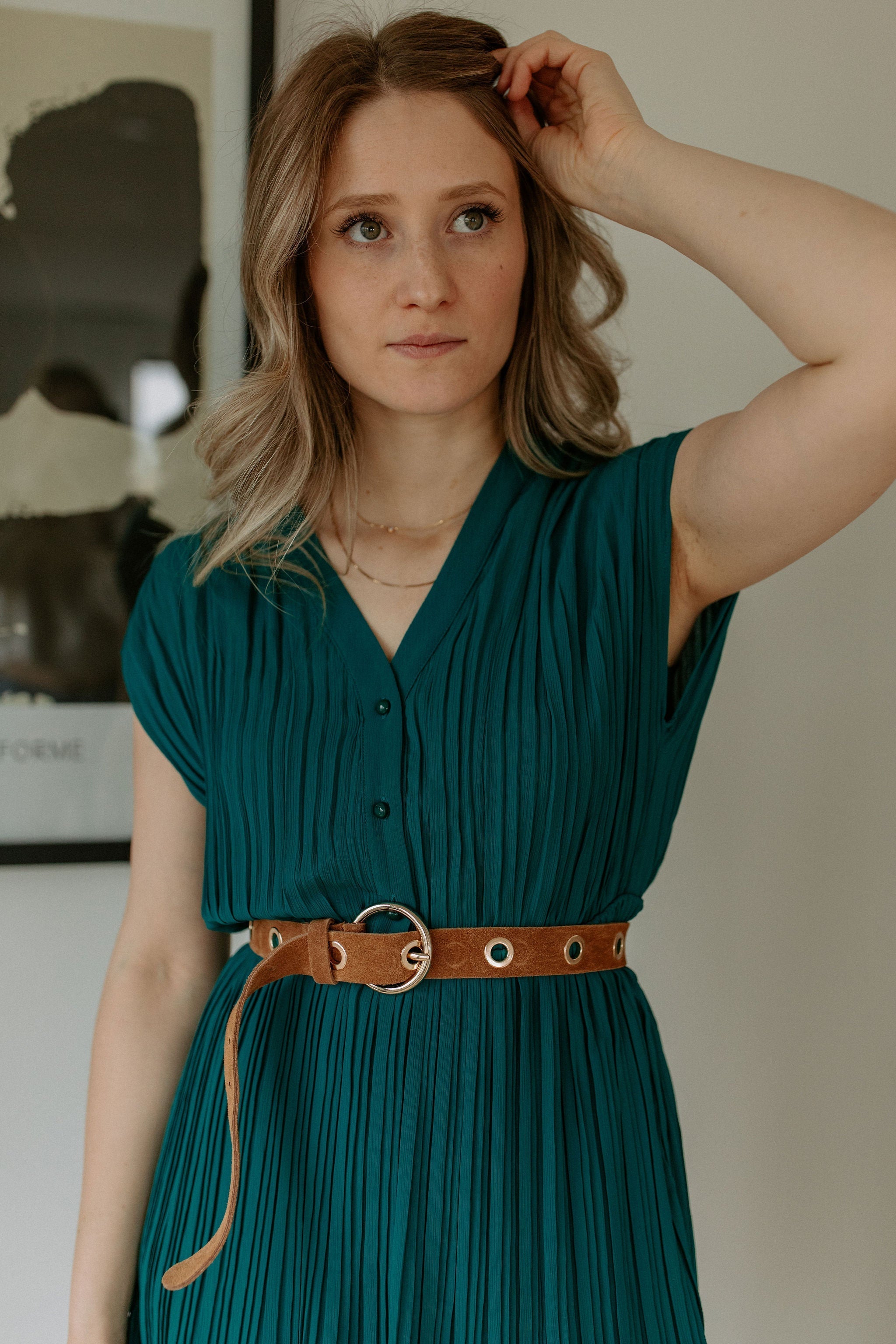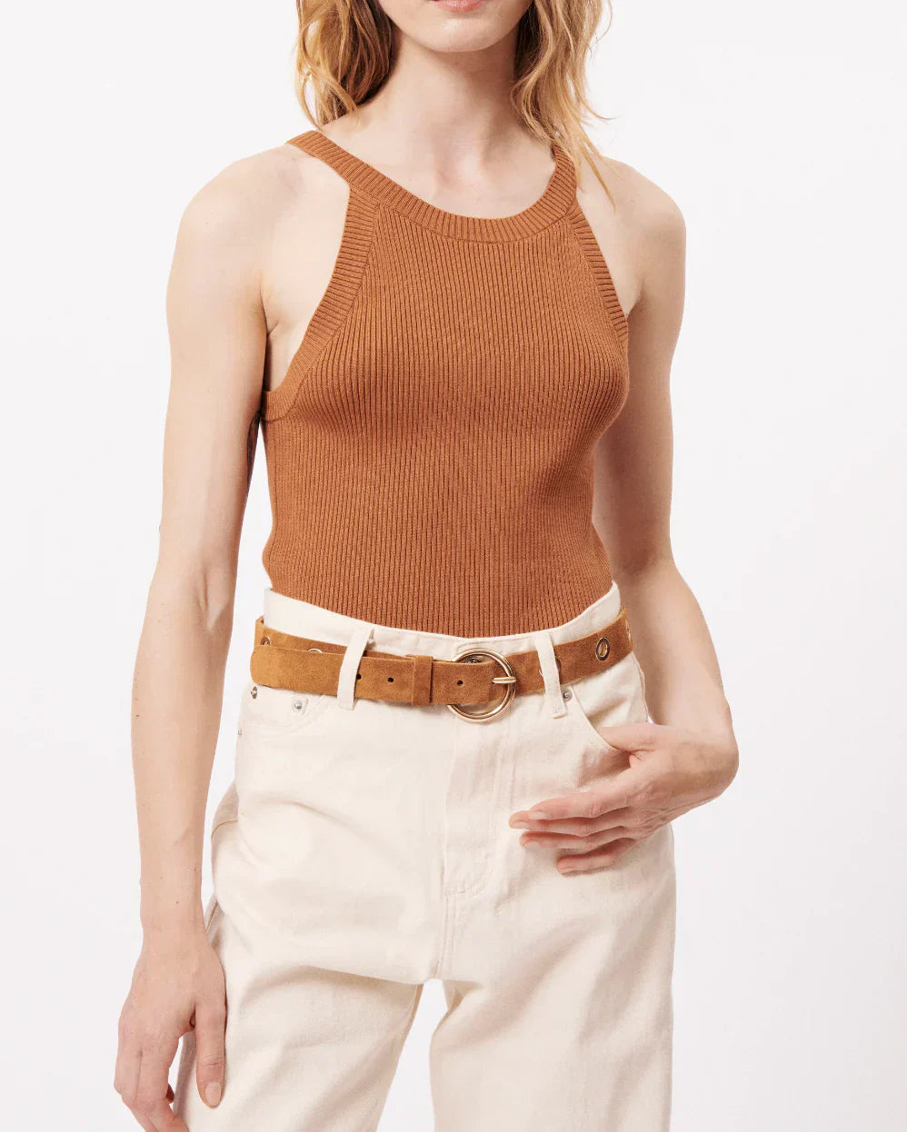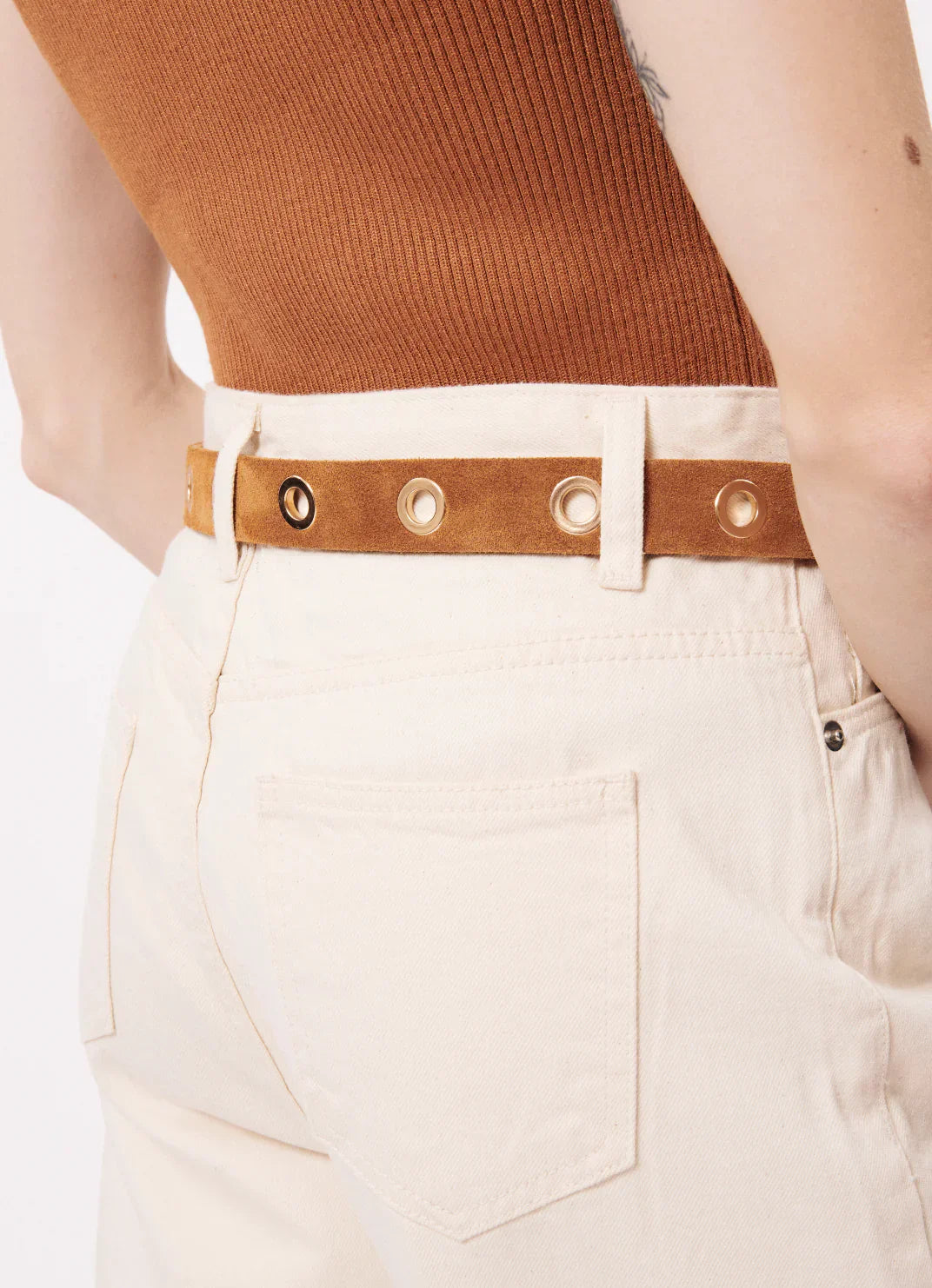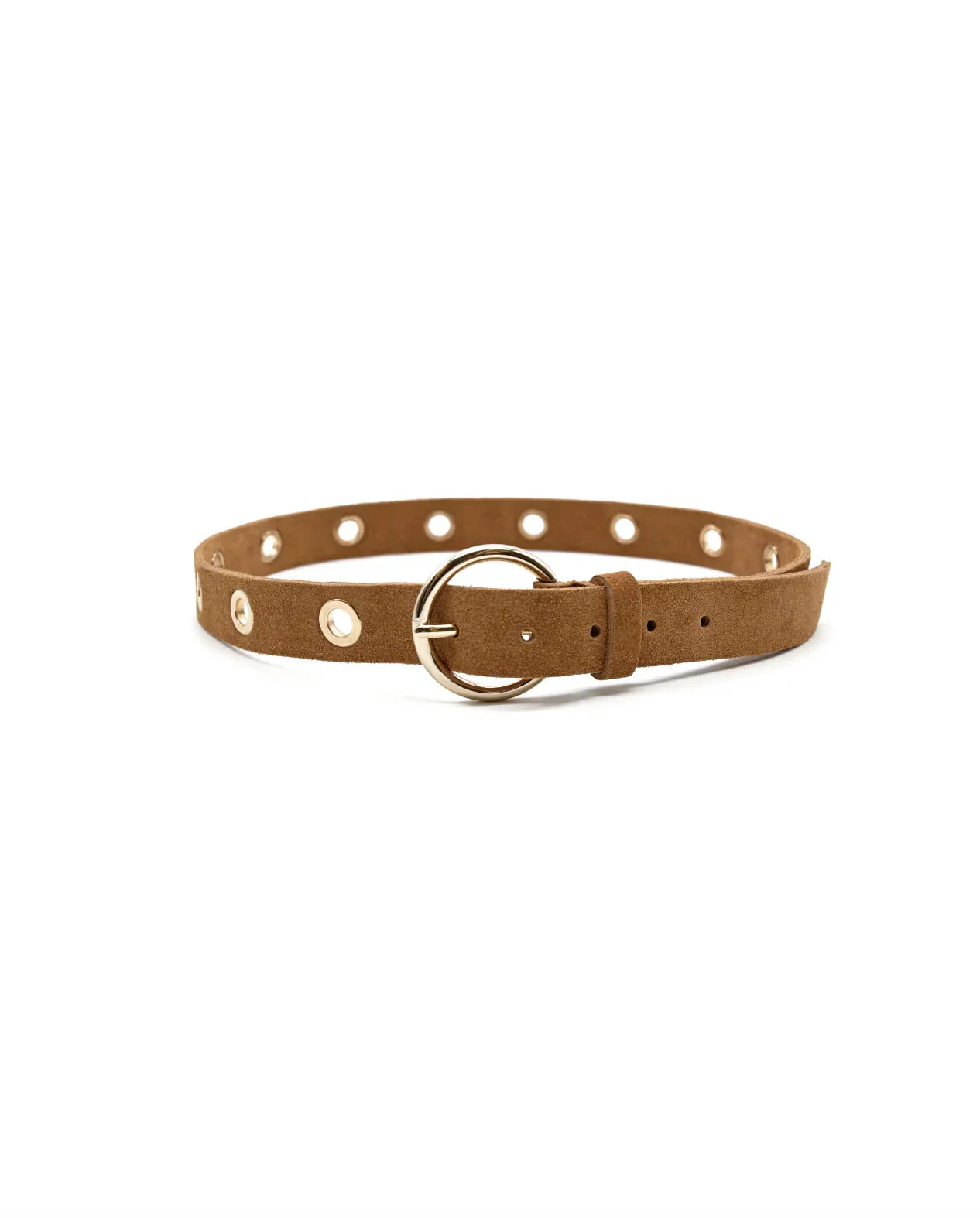 The Lina Suede Grommet Belt by FRNCH - Camel