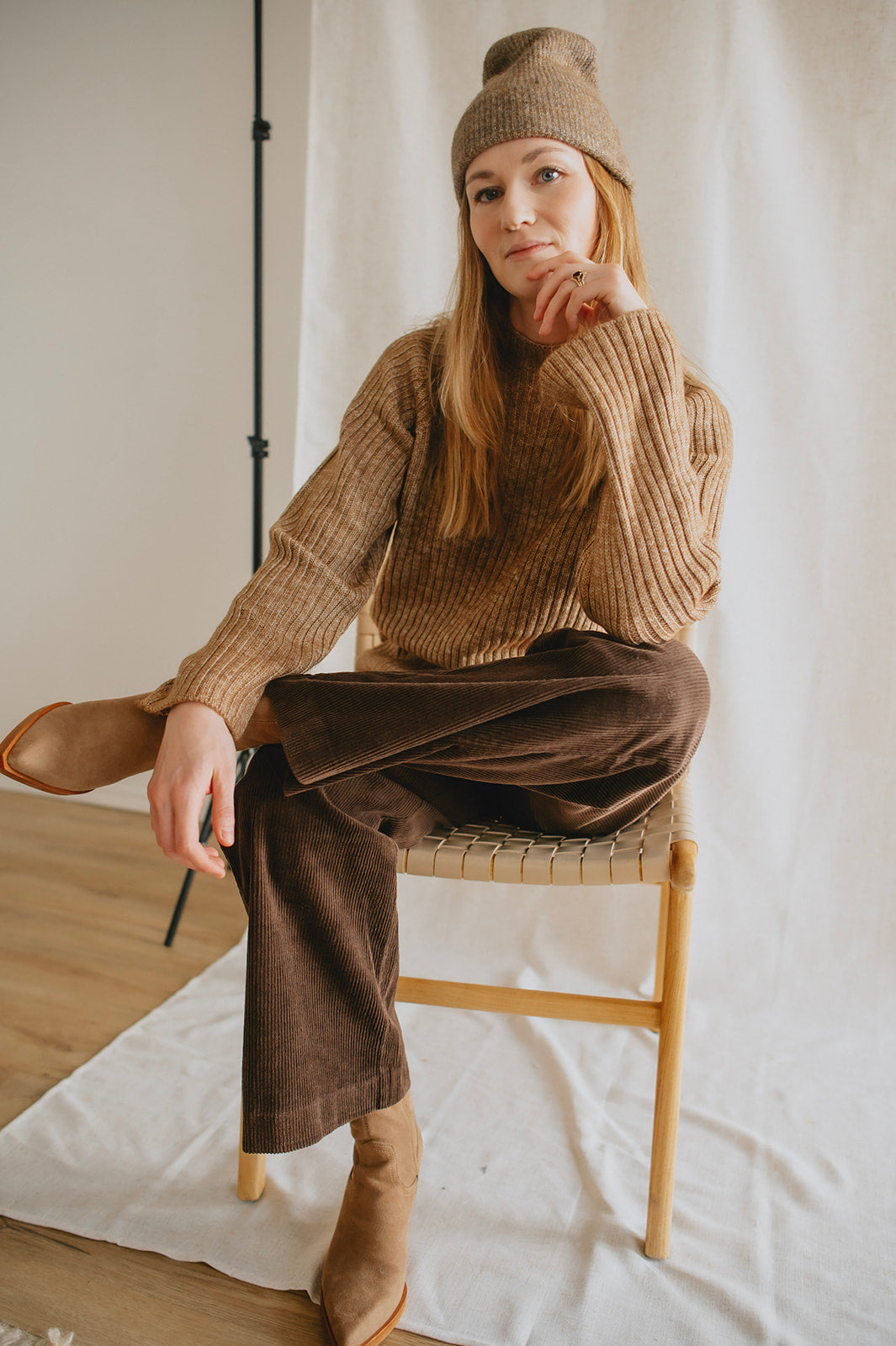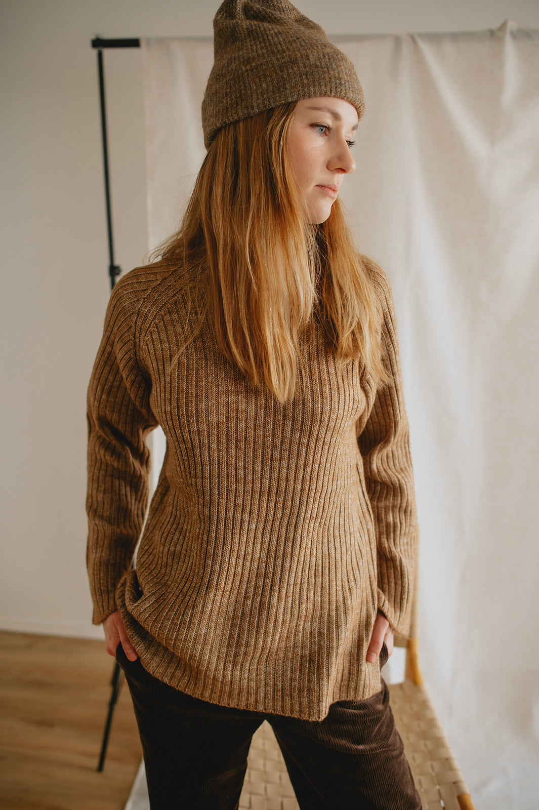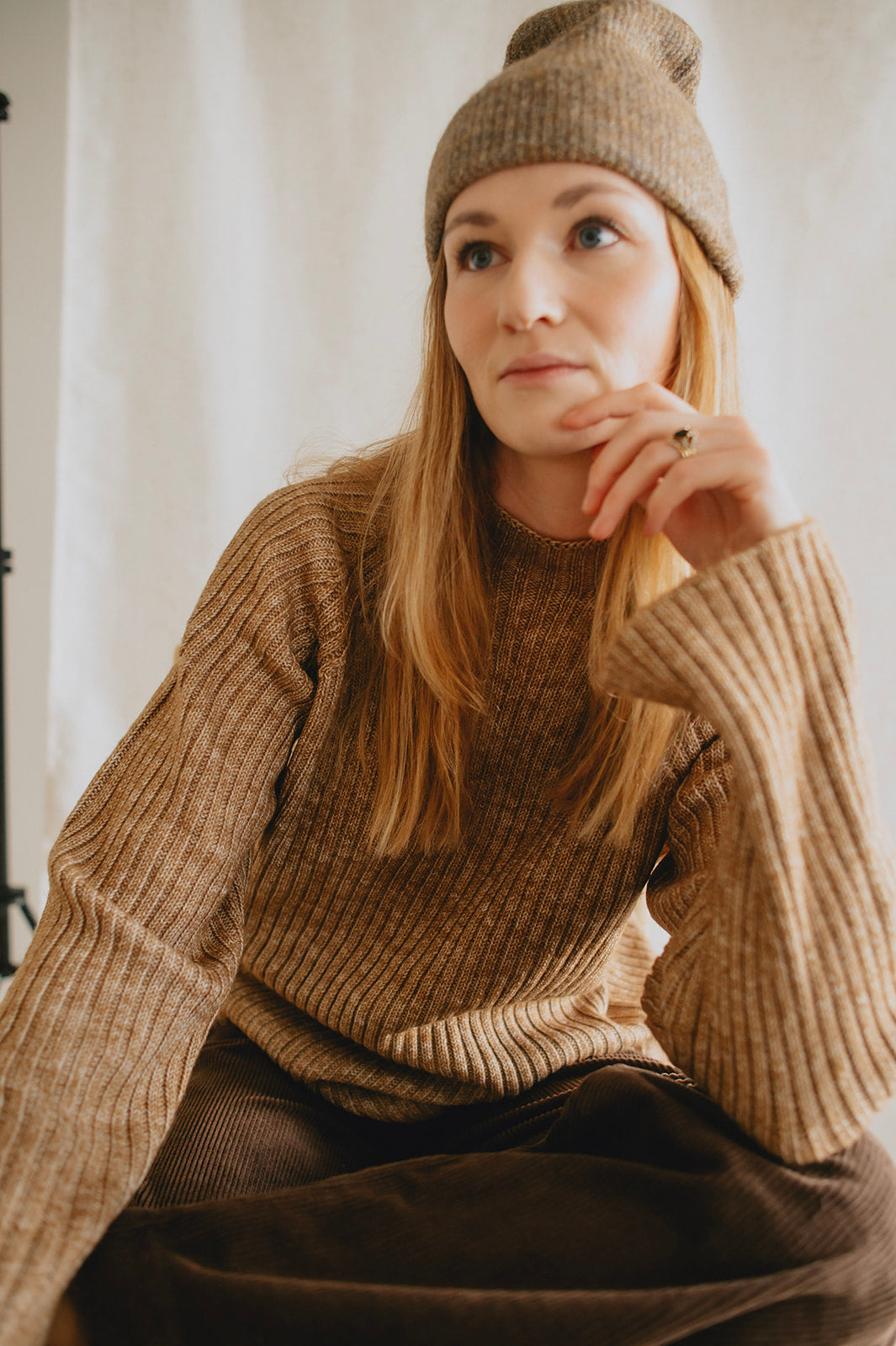 This ribbed pullover is the perfect layering piece. The soft rounded neck, long split raglan sleeves, and longer length in the back makes it wearable for so many styles and occasions. Try pairing her over a white crewneck tee or under a cropped jacket for some added dimension.