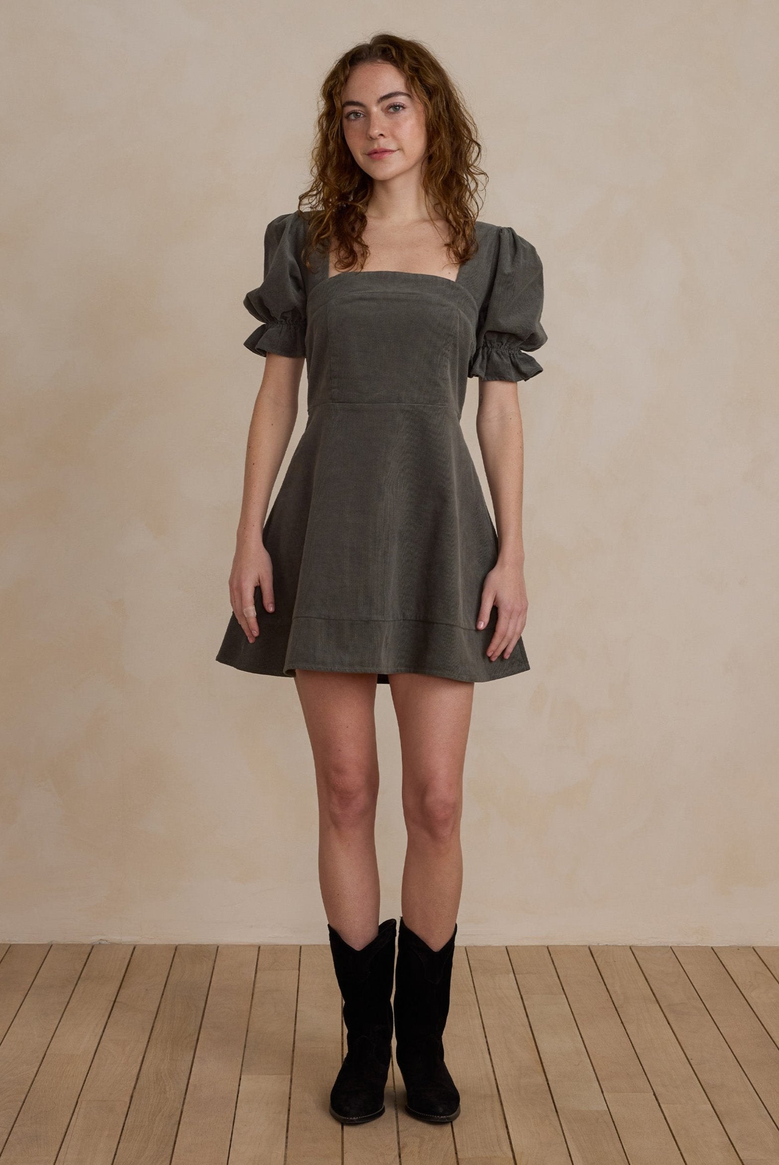 Our Claudia Dress is a mini length with a smocked back and a delicate self-tie at the shoulders.