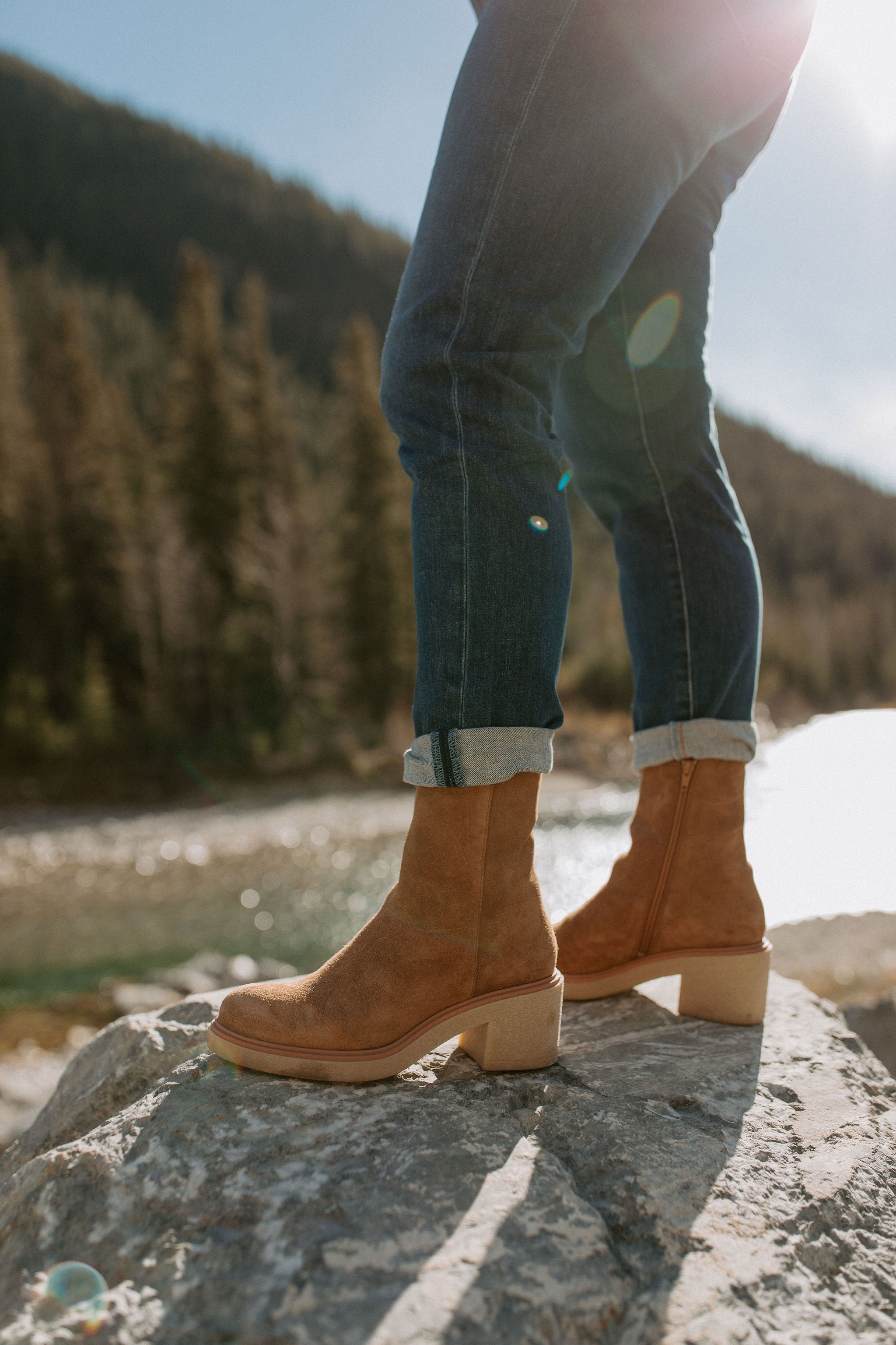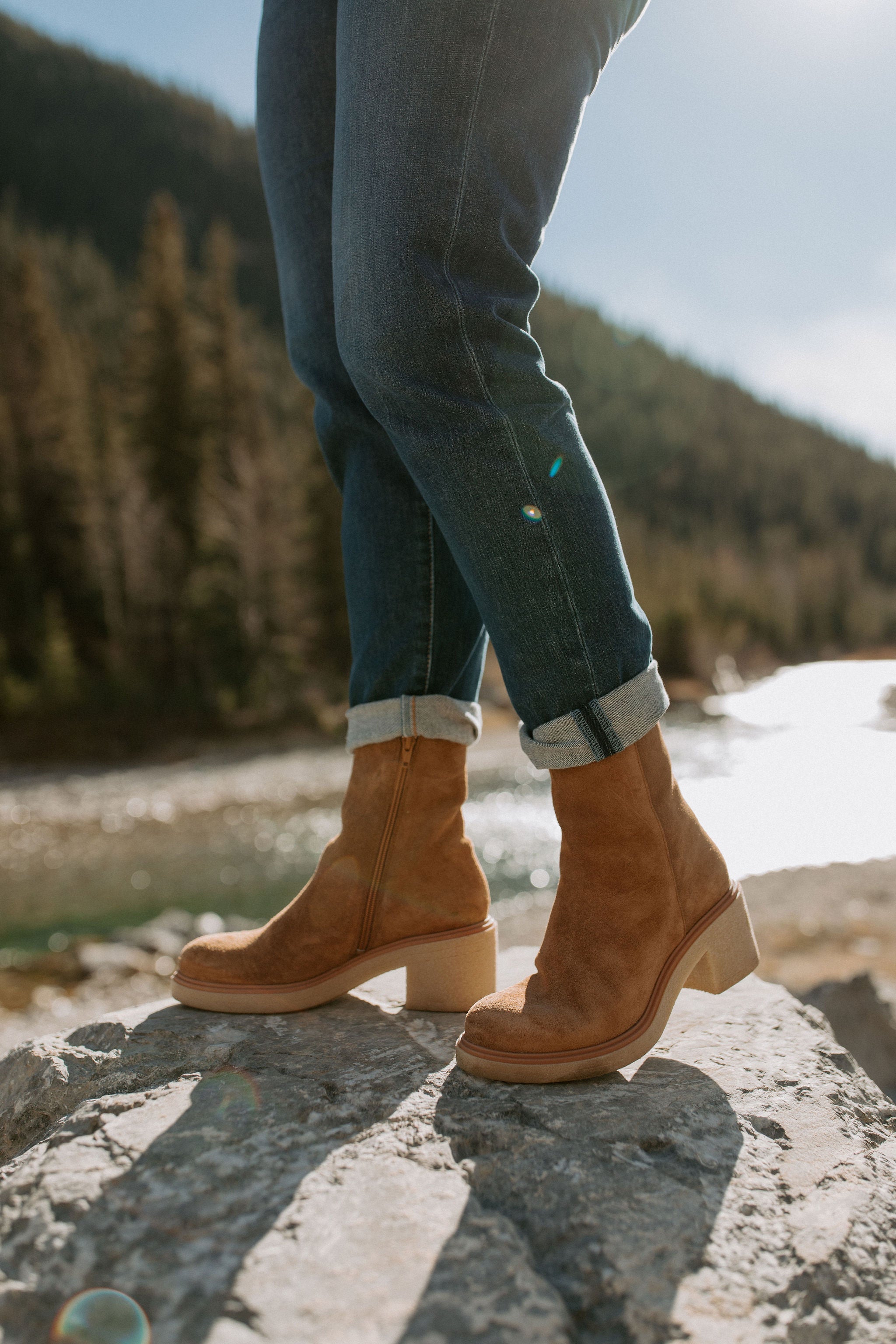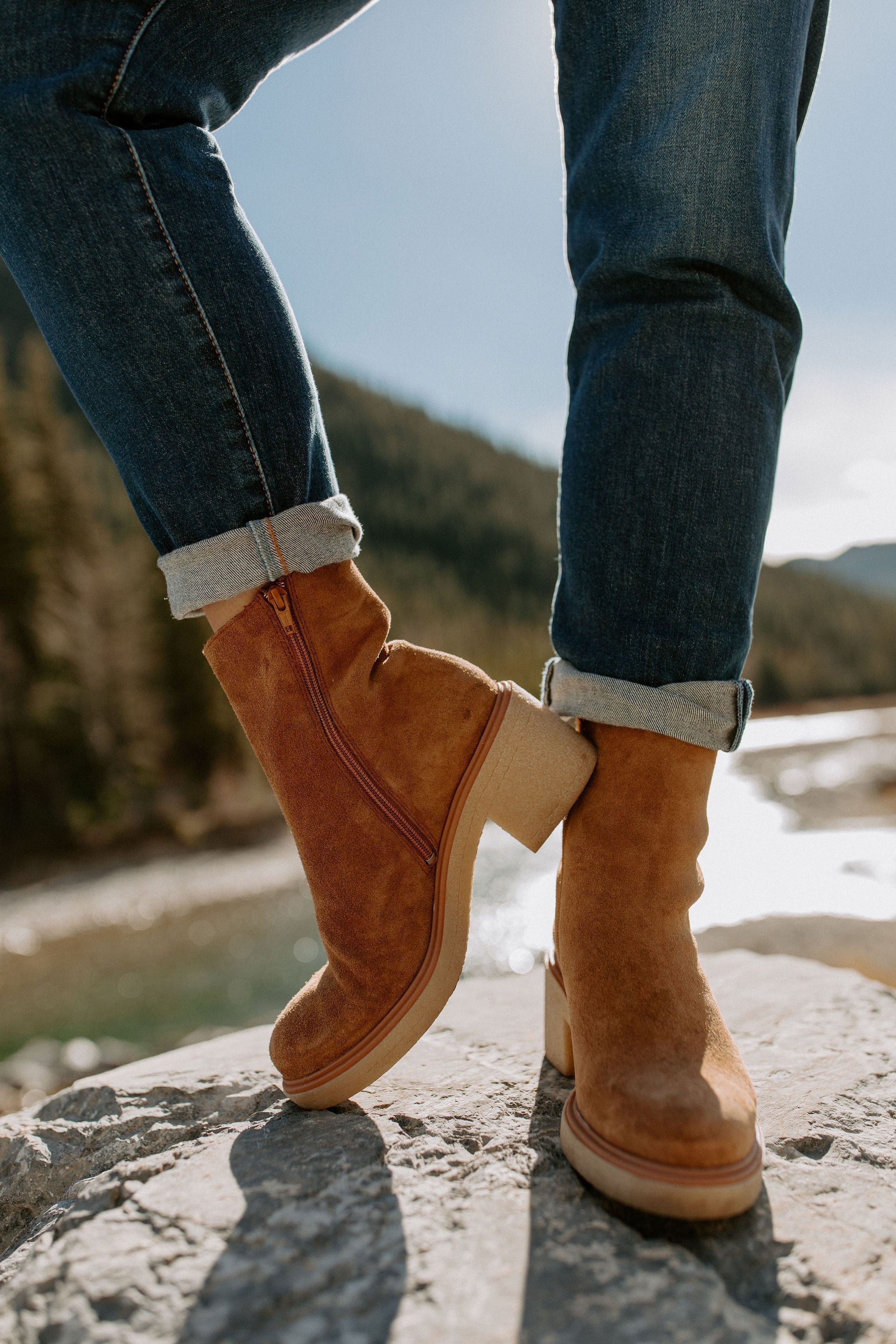 A modern boot that feels retro at heart. The Rose ankle boot features a rich suede upper atop a contrasting crepe rubber platform sole that provides the perfect amount of laid-back style.