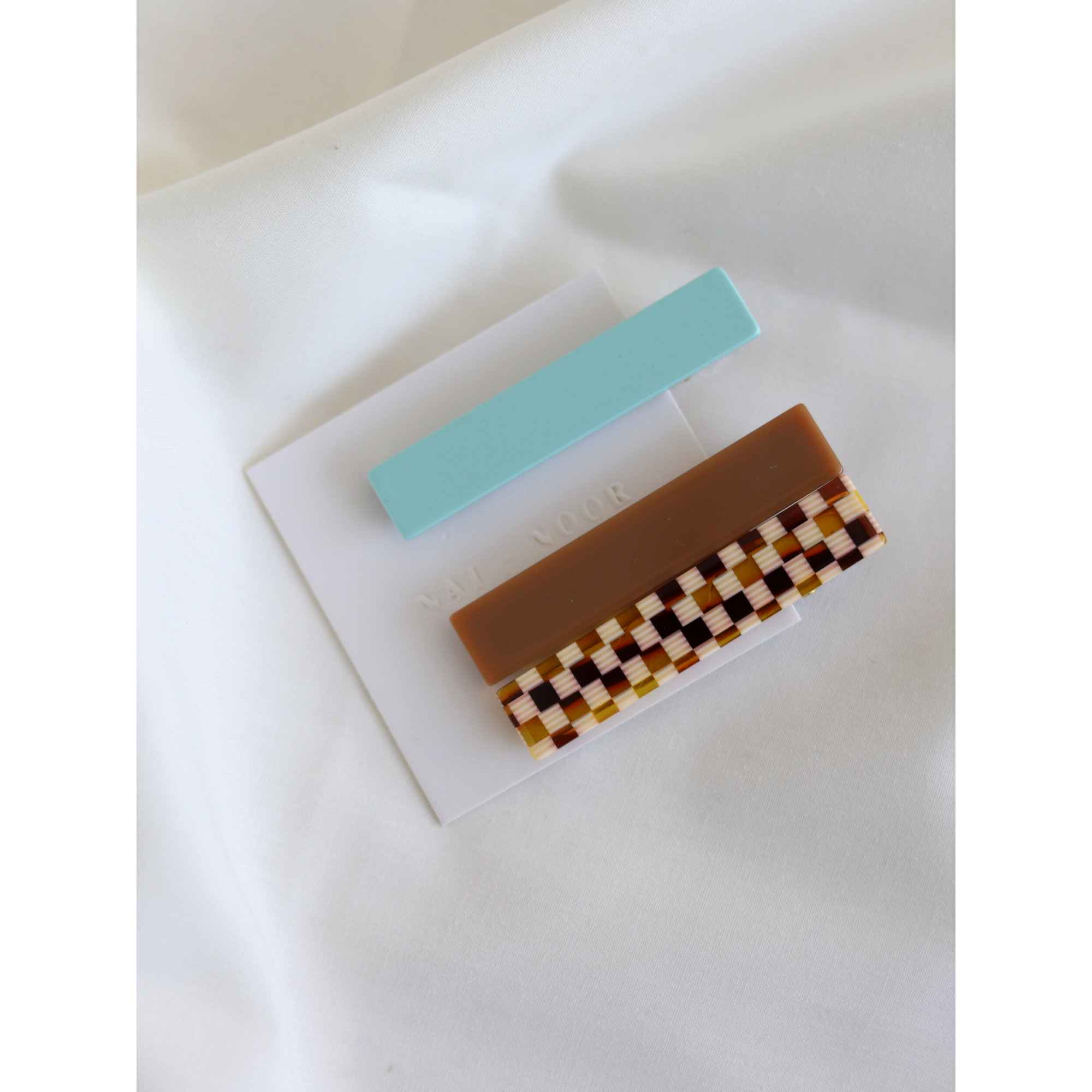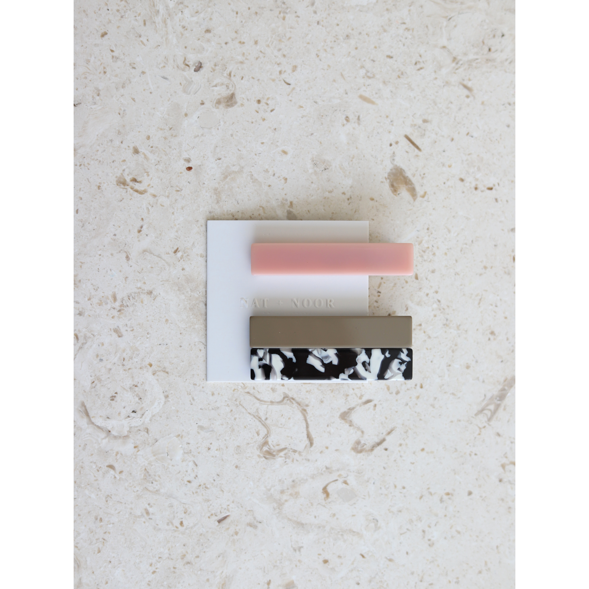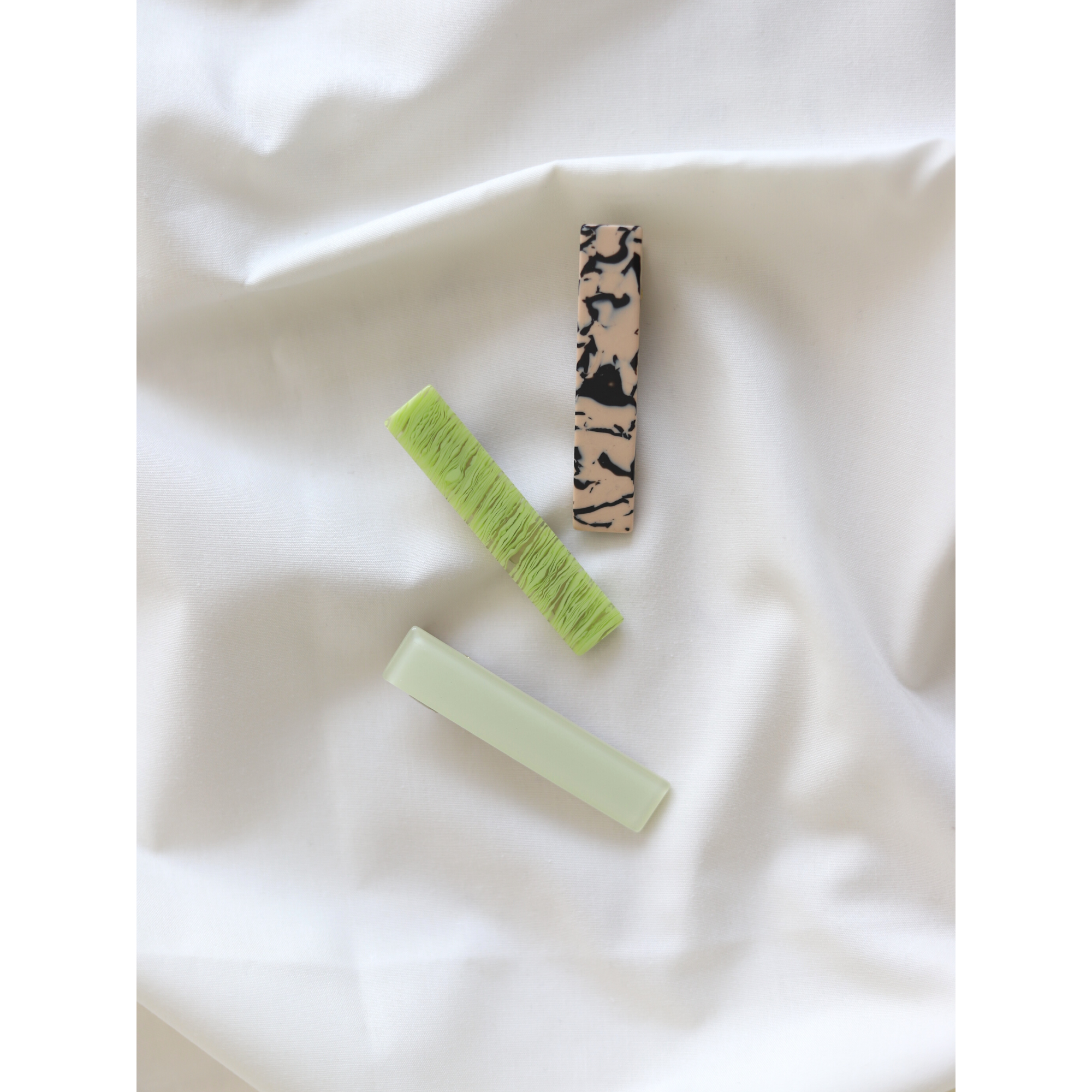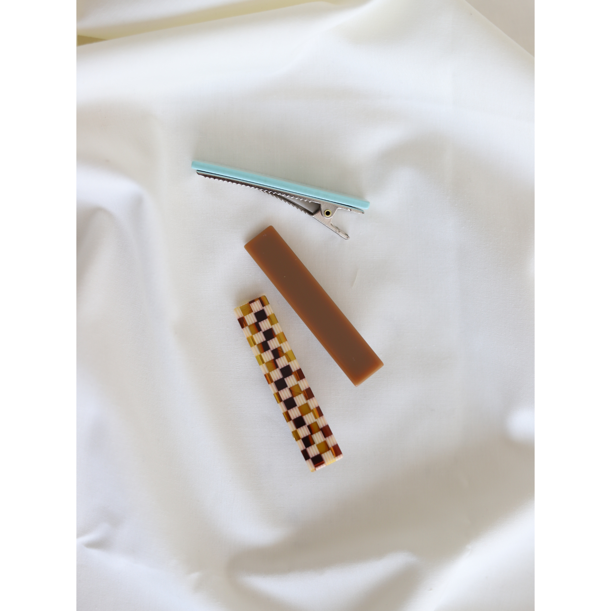 A pair of 3 alligator clip barrettes. Soft coated metal material.