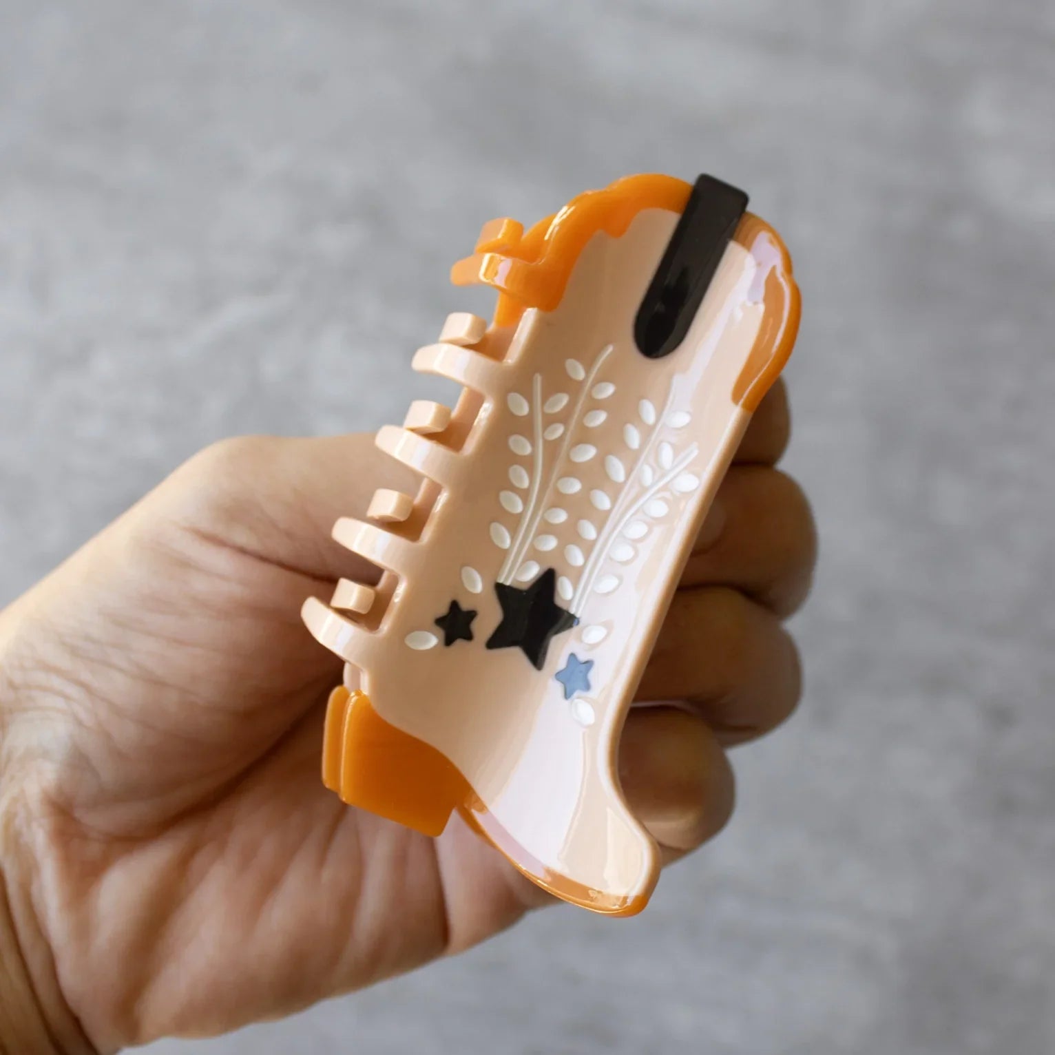 Introducing our Eco Shooting Star Cowboy Boots Hair Claw Clip. Made with sustainable materials, this clip is environmentally friendly while still providing a strong grip for all hair types. Perfect for any cowboy or cowgirl look, this clip is both stylish and responsible.
