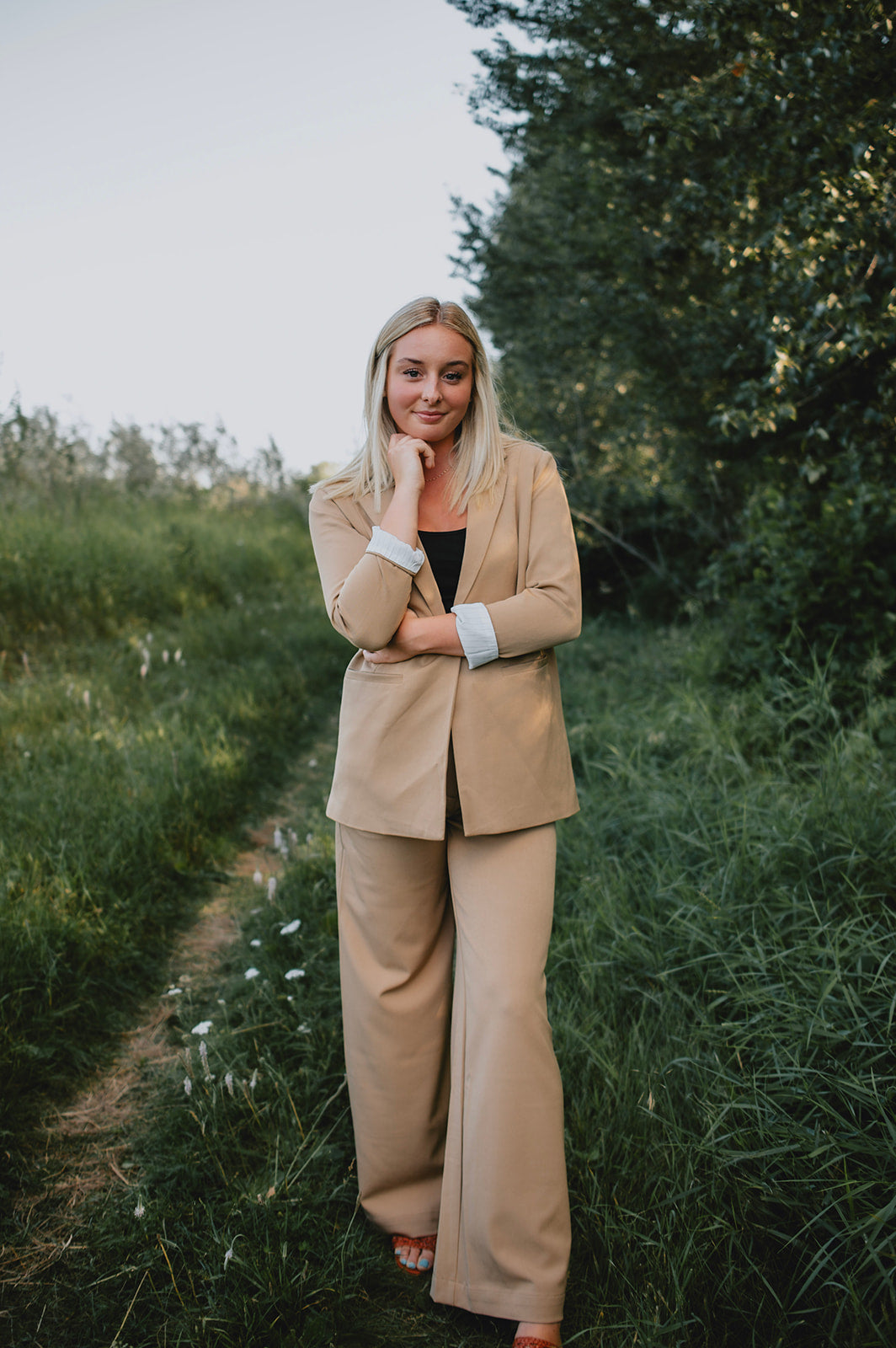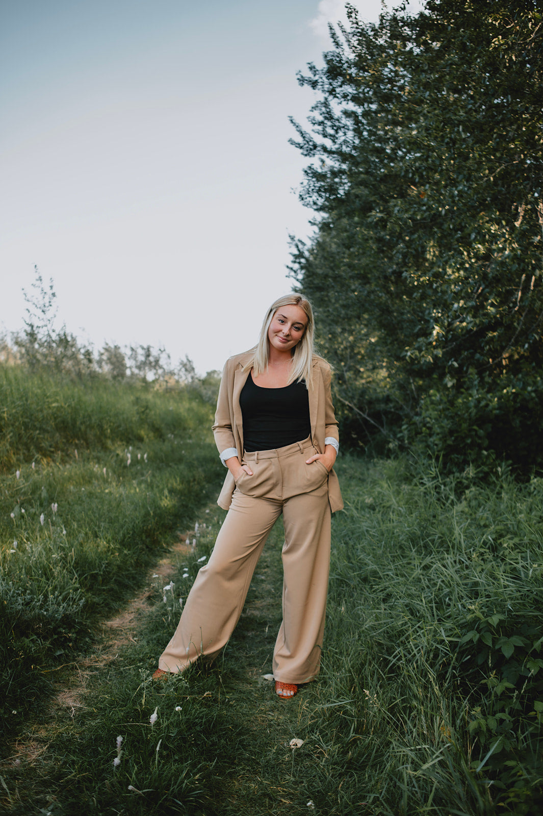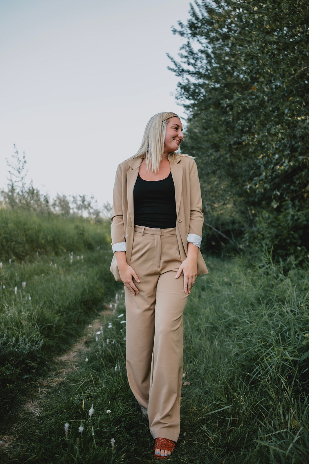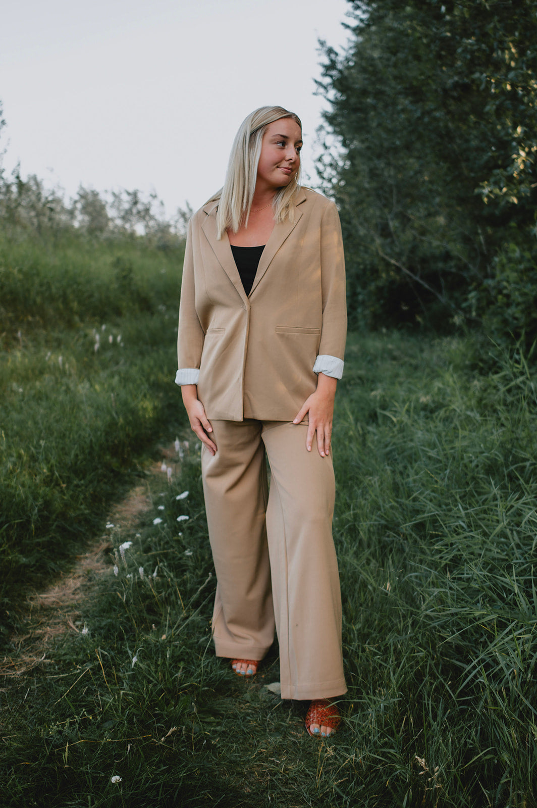 The Lessa pant is a flared pants with front pleats. The pant is delicately weaved, and has a loose silhouette and contains elastane for comfort. It features wide legs, slanted pockets, welt pockets and belt loops. The pant has a hidden zipper and button closure.