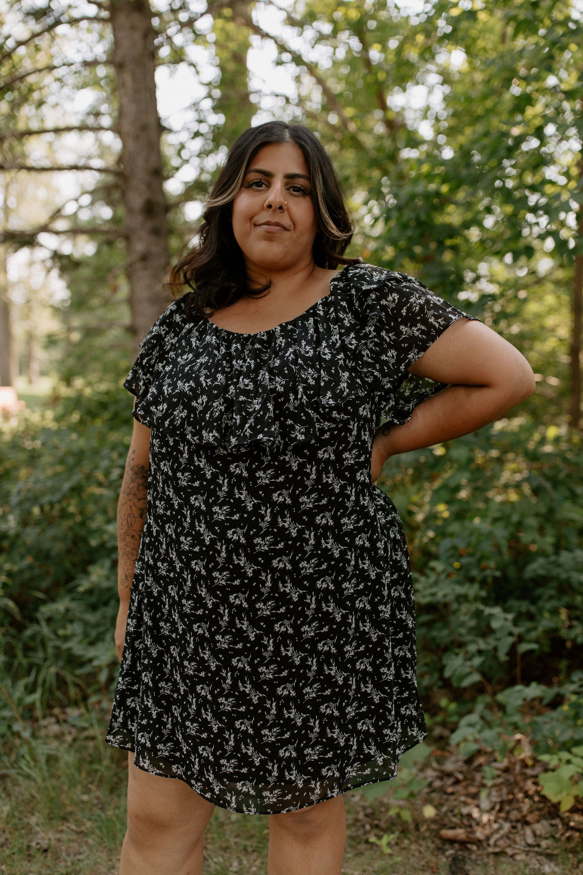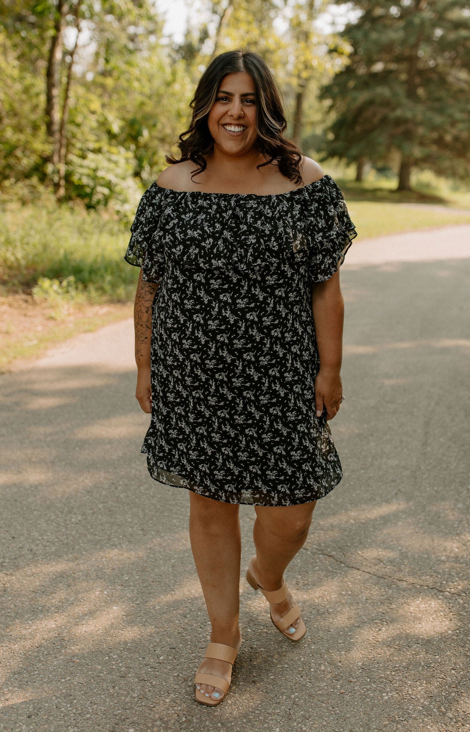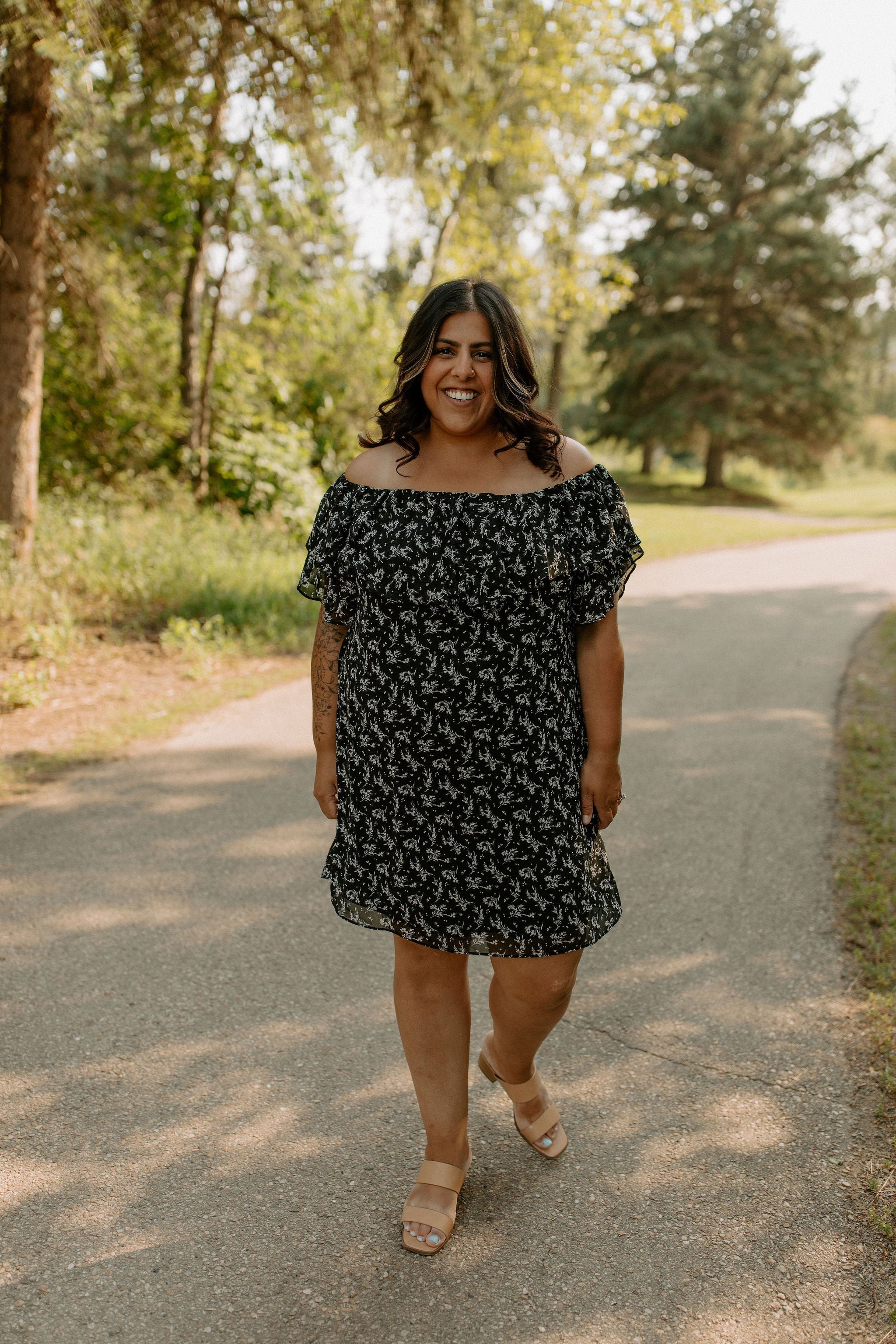 This off the shoulder dress is stunning and perfect for any occasion! The slight ruffle detail adds style to the dress, making it easy to wear at a wedding, or simply while running errands!