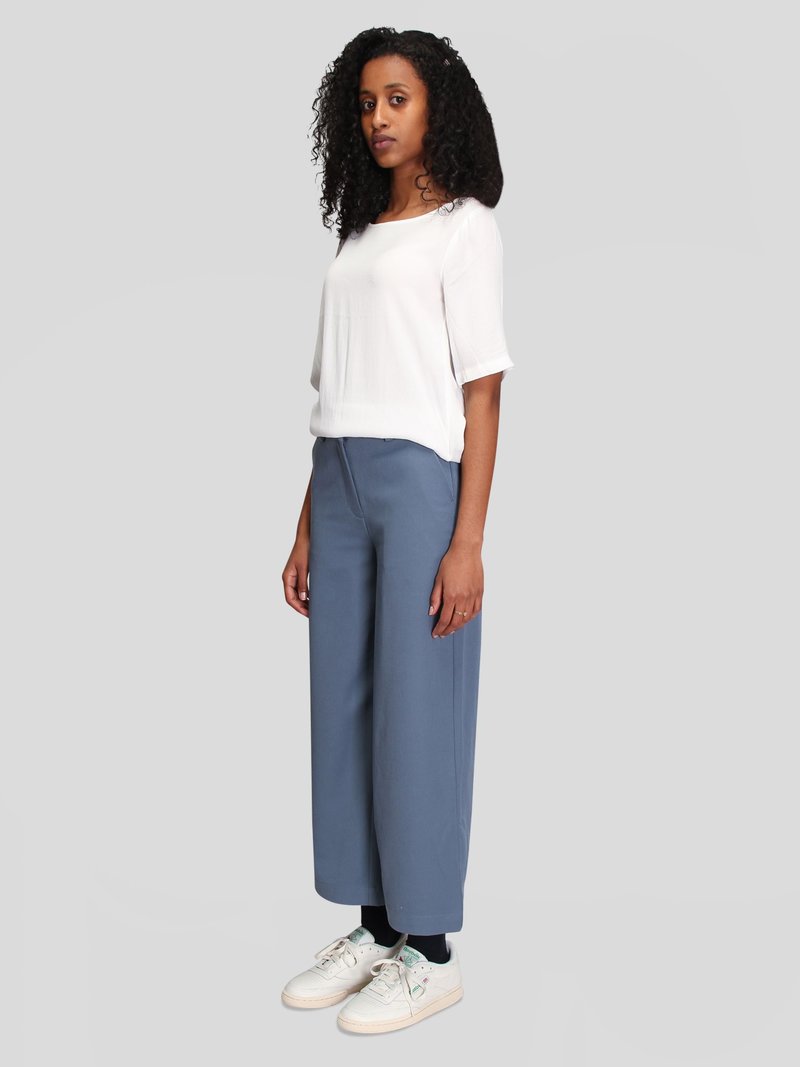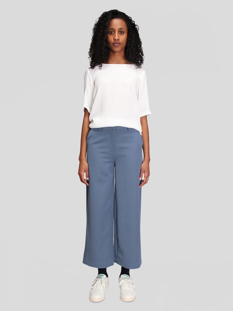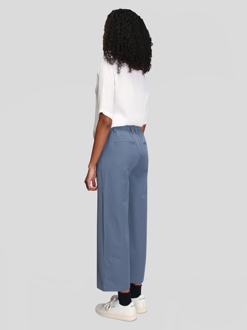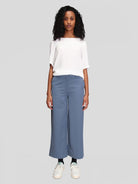 the Culotta Pants are a classic culotte pant as the name suggests. They are crafted from a comfortable and stretchy quality with wide legs that end around mid calf. The pants feature elastic at the waist, slanted pockets along the sides, slit pockets on the back, belt loops and hidden zipper closure.