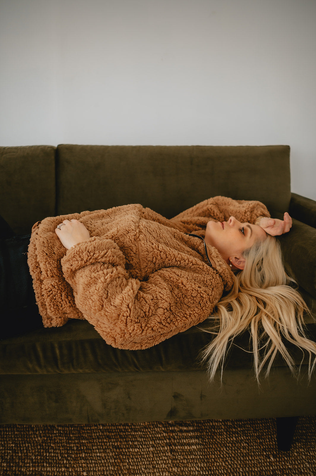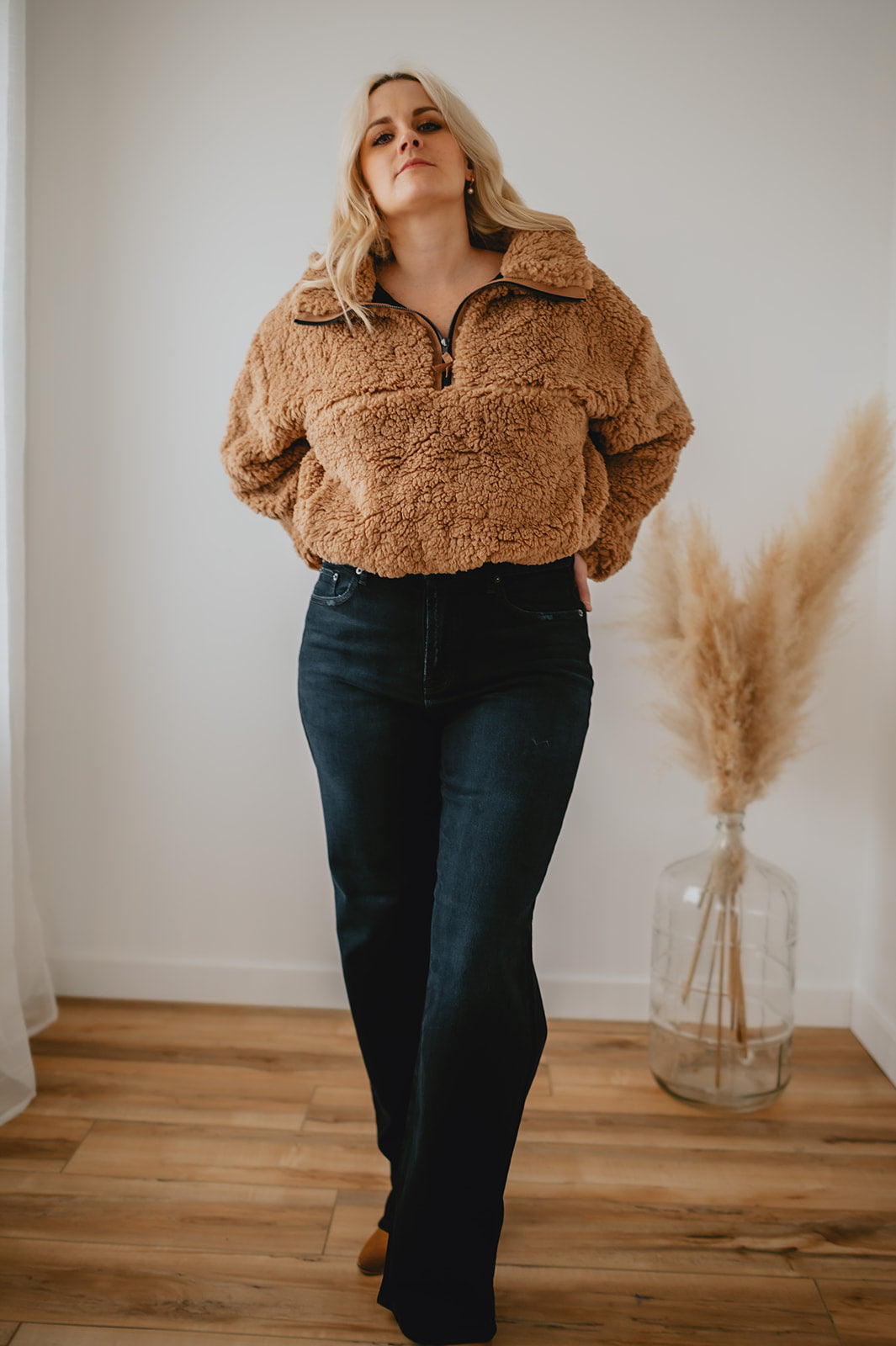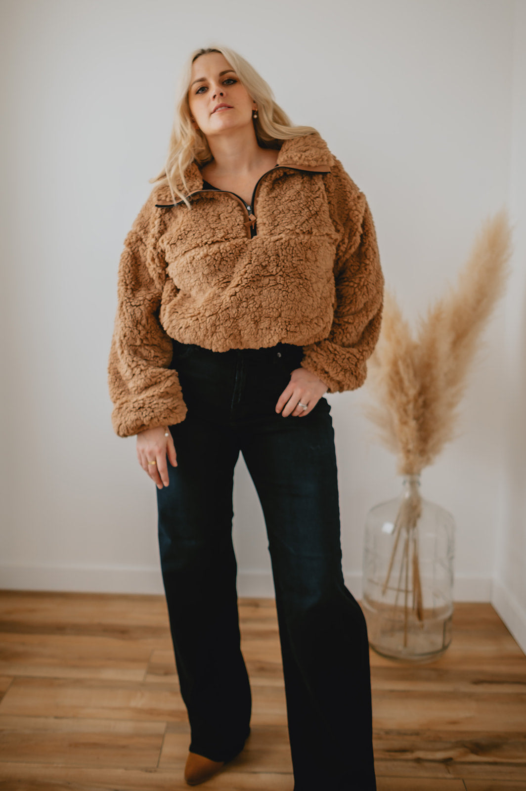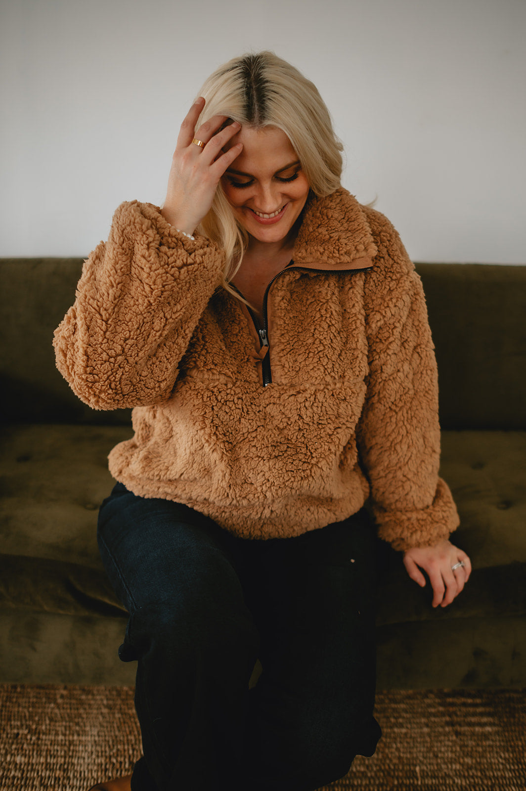 Stay bundled! The Everest Pullover features Sherpa fabric and a drawstring at the waist.