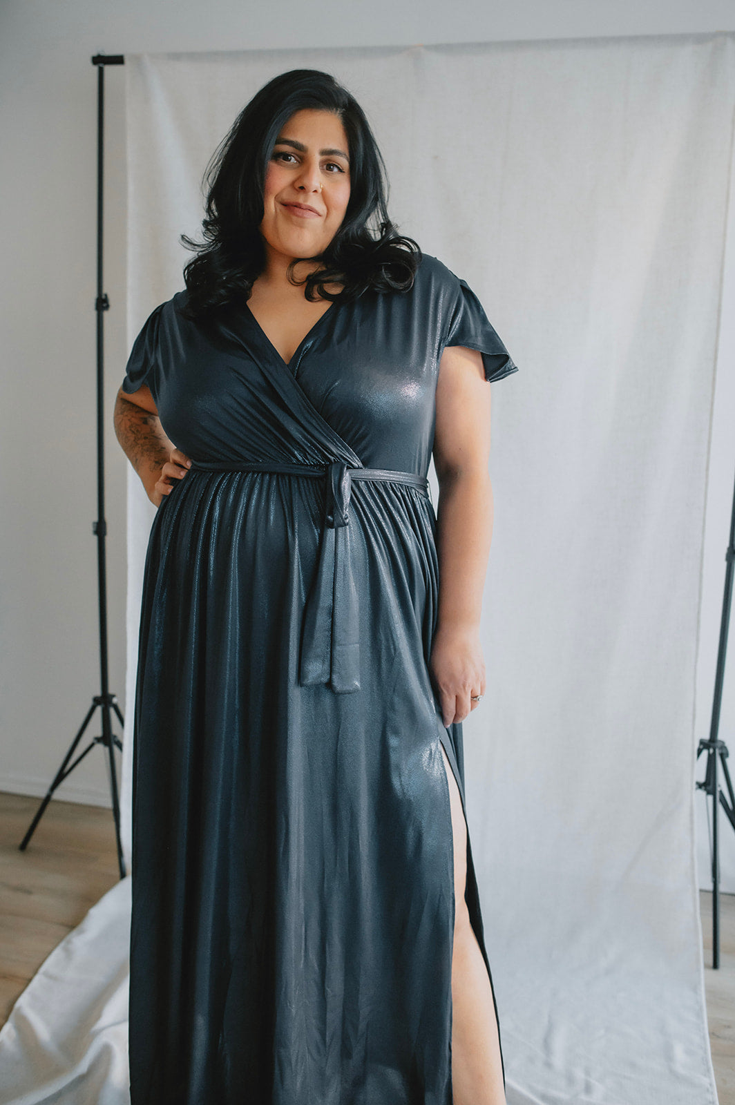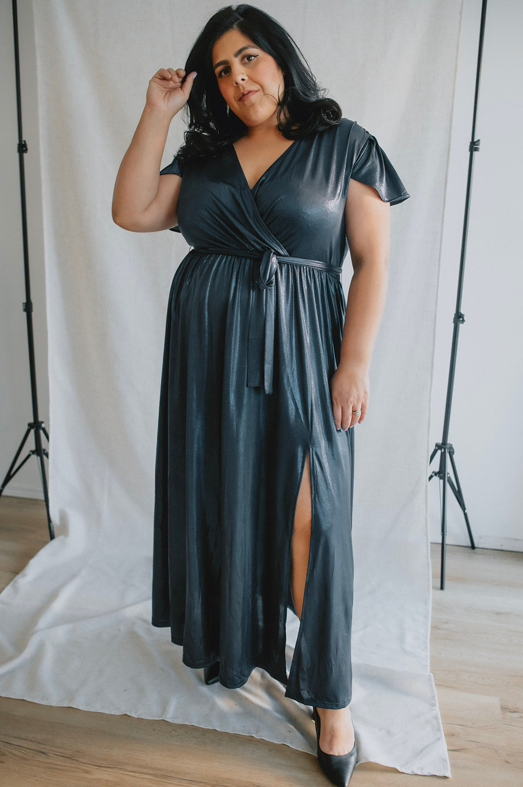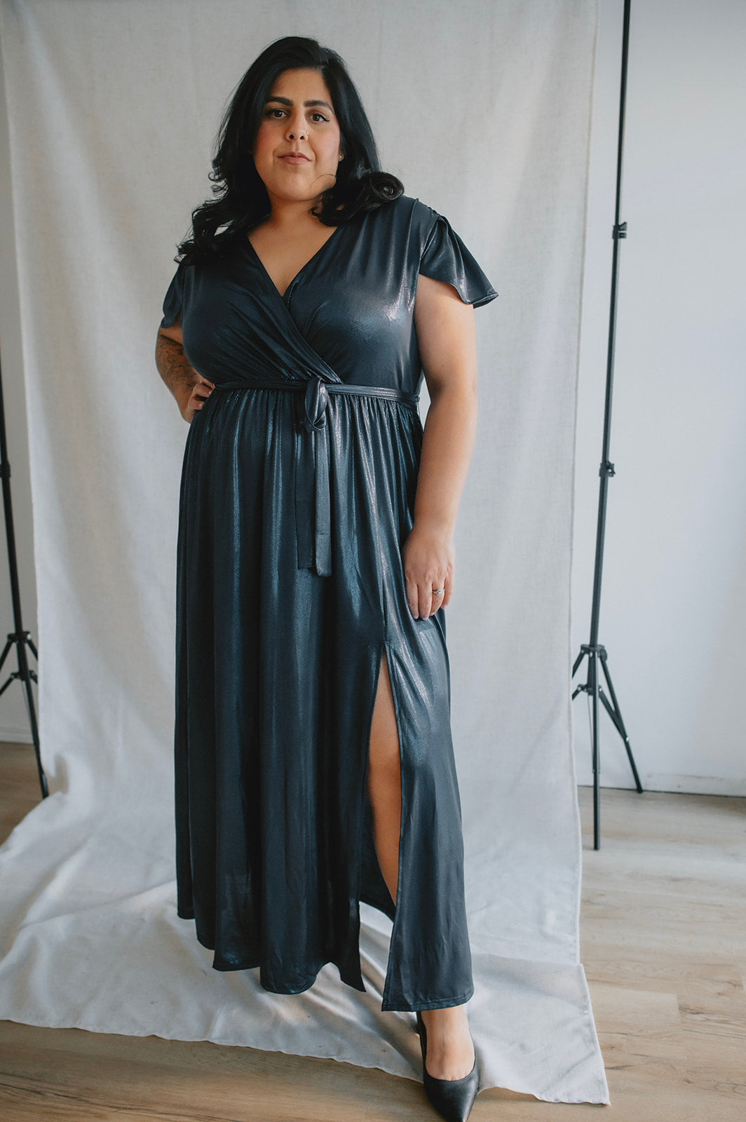 A classic silhouette that looks good on all bodies, this wrap dress will be your go-to holiday party outfit. The thigh slit and v-neck show off just the right amount while the long length and flutter sleeves cover up the right amount. This dress is eye-catching but comfortable so you can dance all night long!