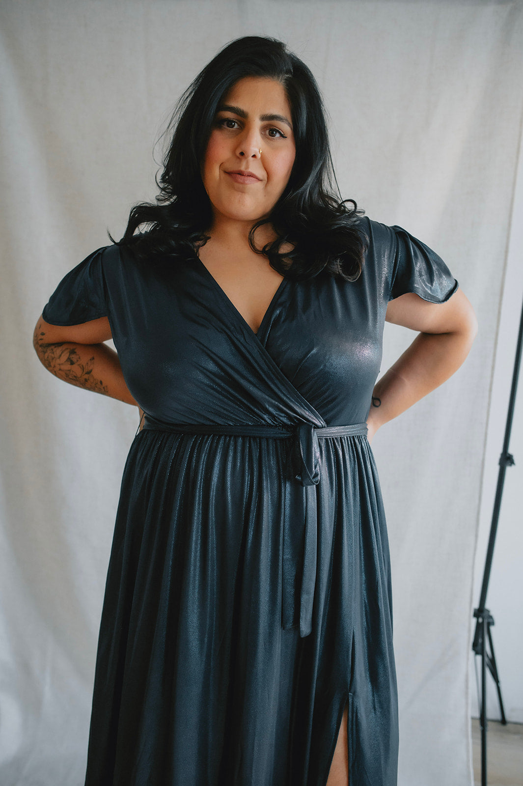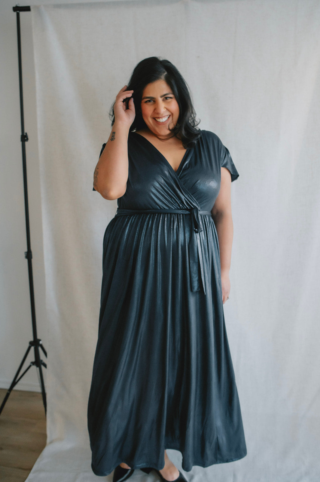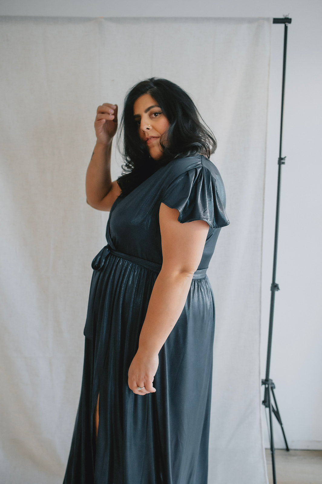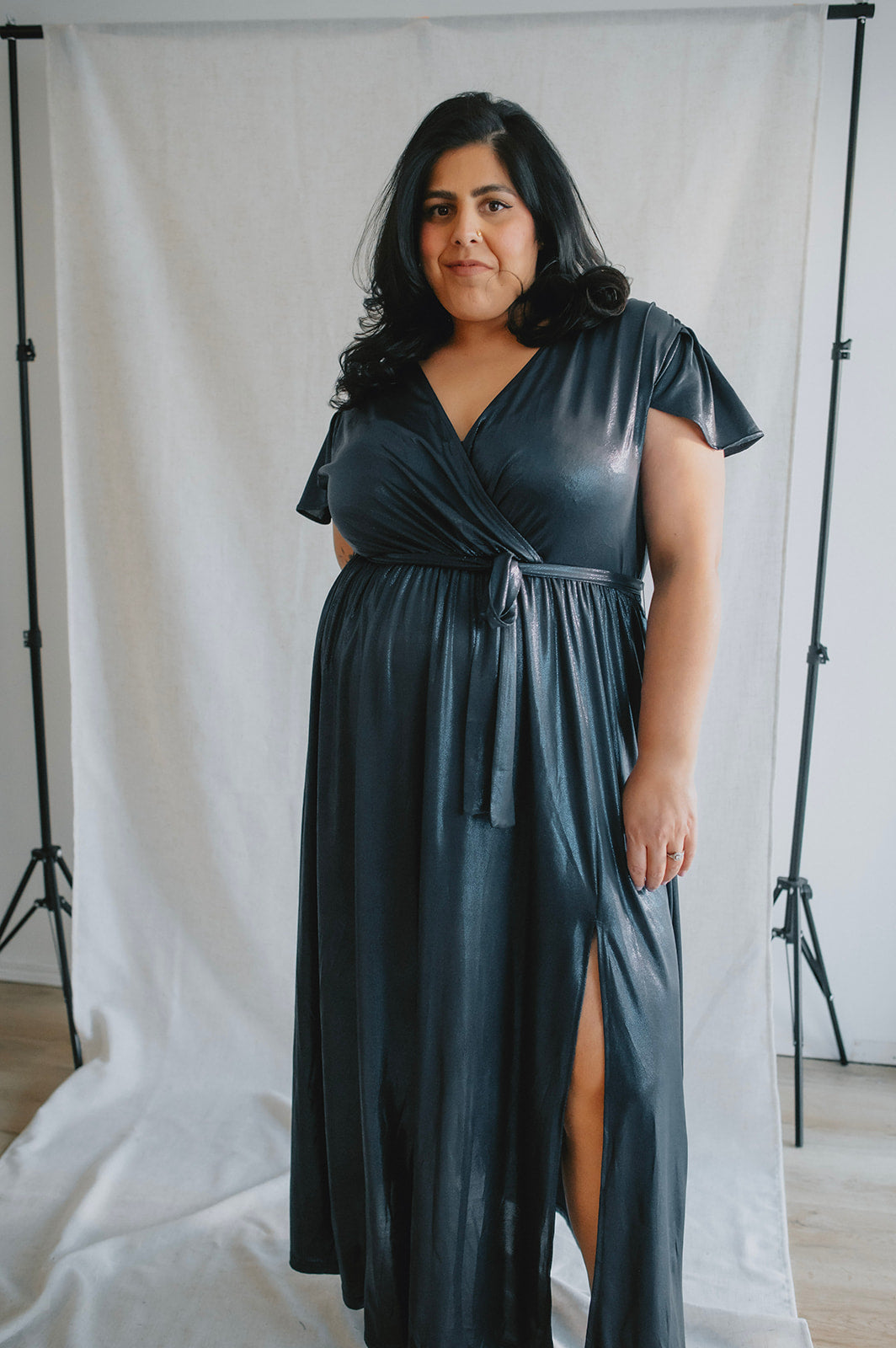 A classic silhouette that looks good on all bodies, this wrap dress will be your go-to holiday party outfit. The thigh slit and v-neck show off just the right amount while the long length and flutter sleeves cover up the right amount. This dress is eye-catching but comfortable so you can dance all night long!