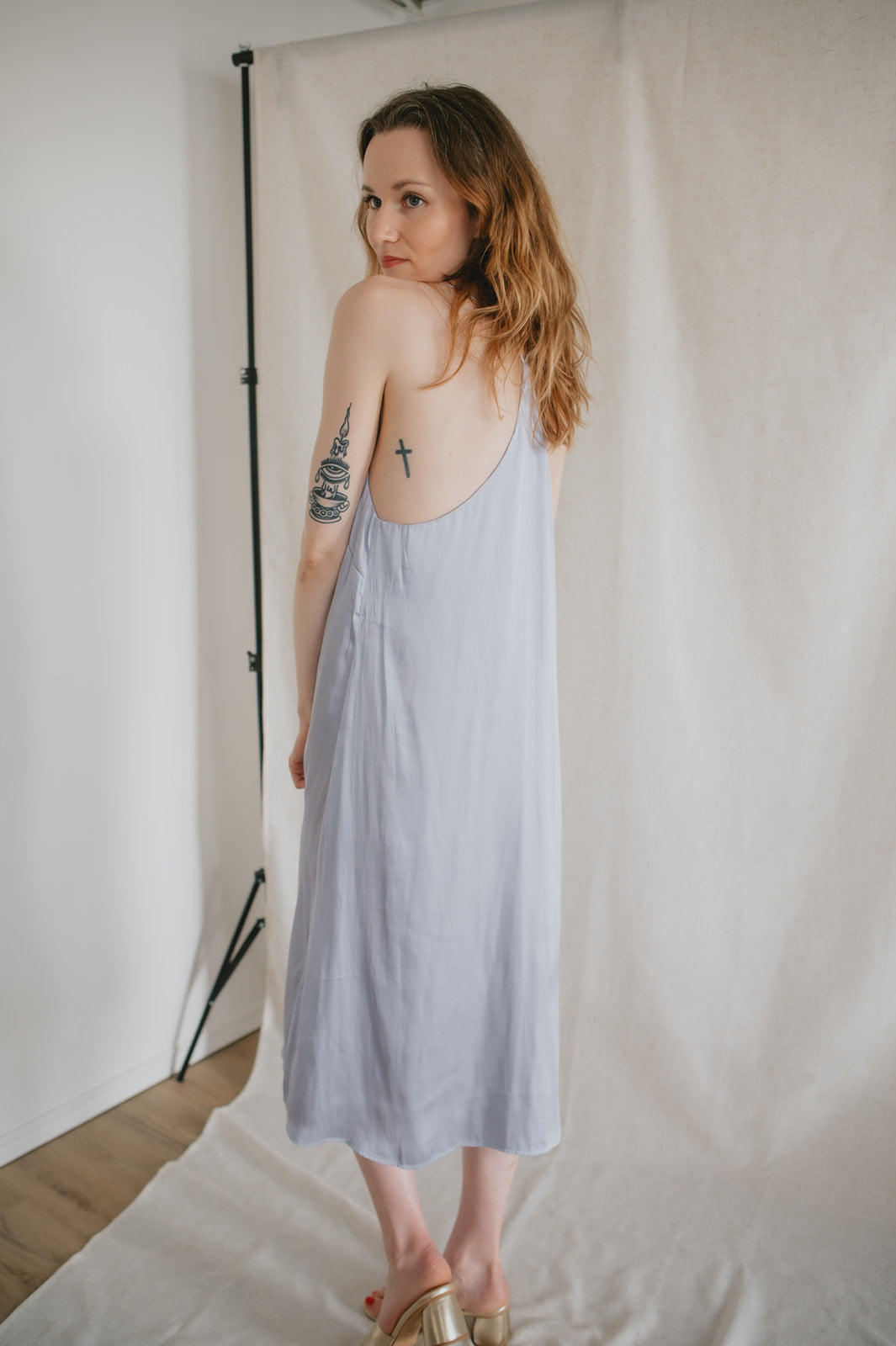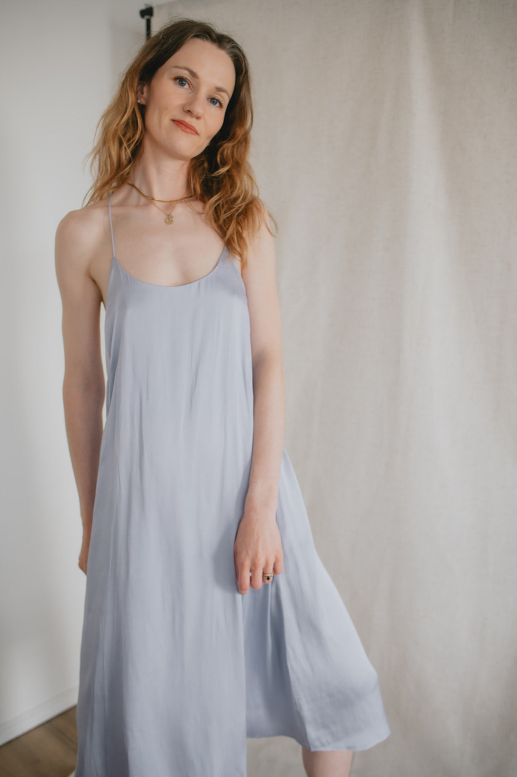 A perfect update on a basic - the satin slip dress in a relaxed style will be your new go-to item year round. This beauty layers beautifully over AND under tees, on her own, or with a cute jacket or cardigan! Retro meets modern!