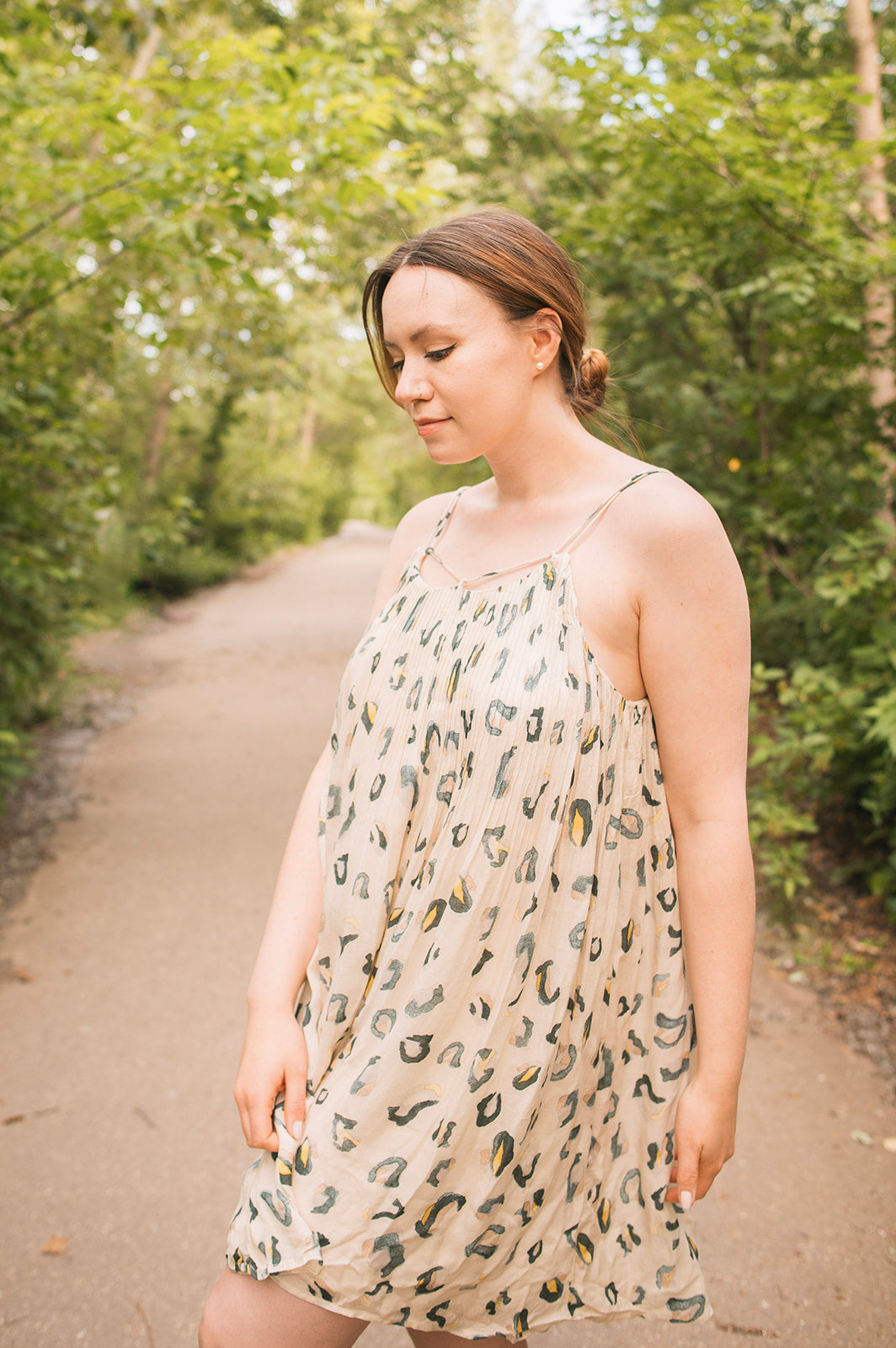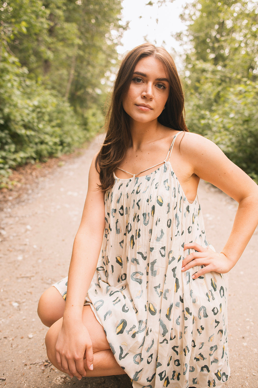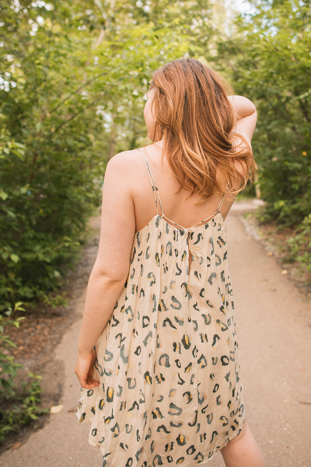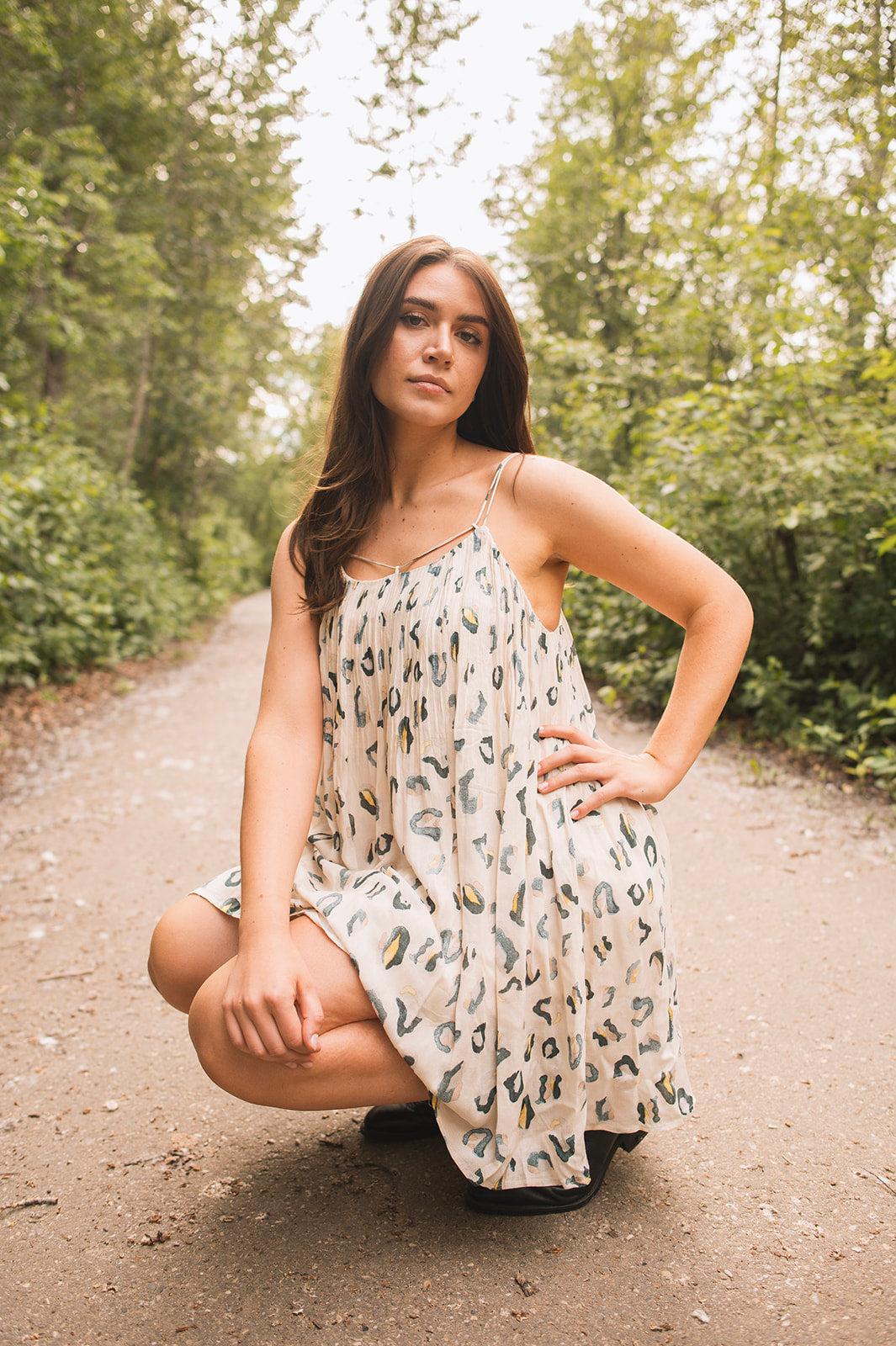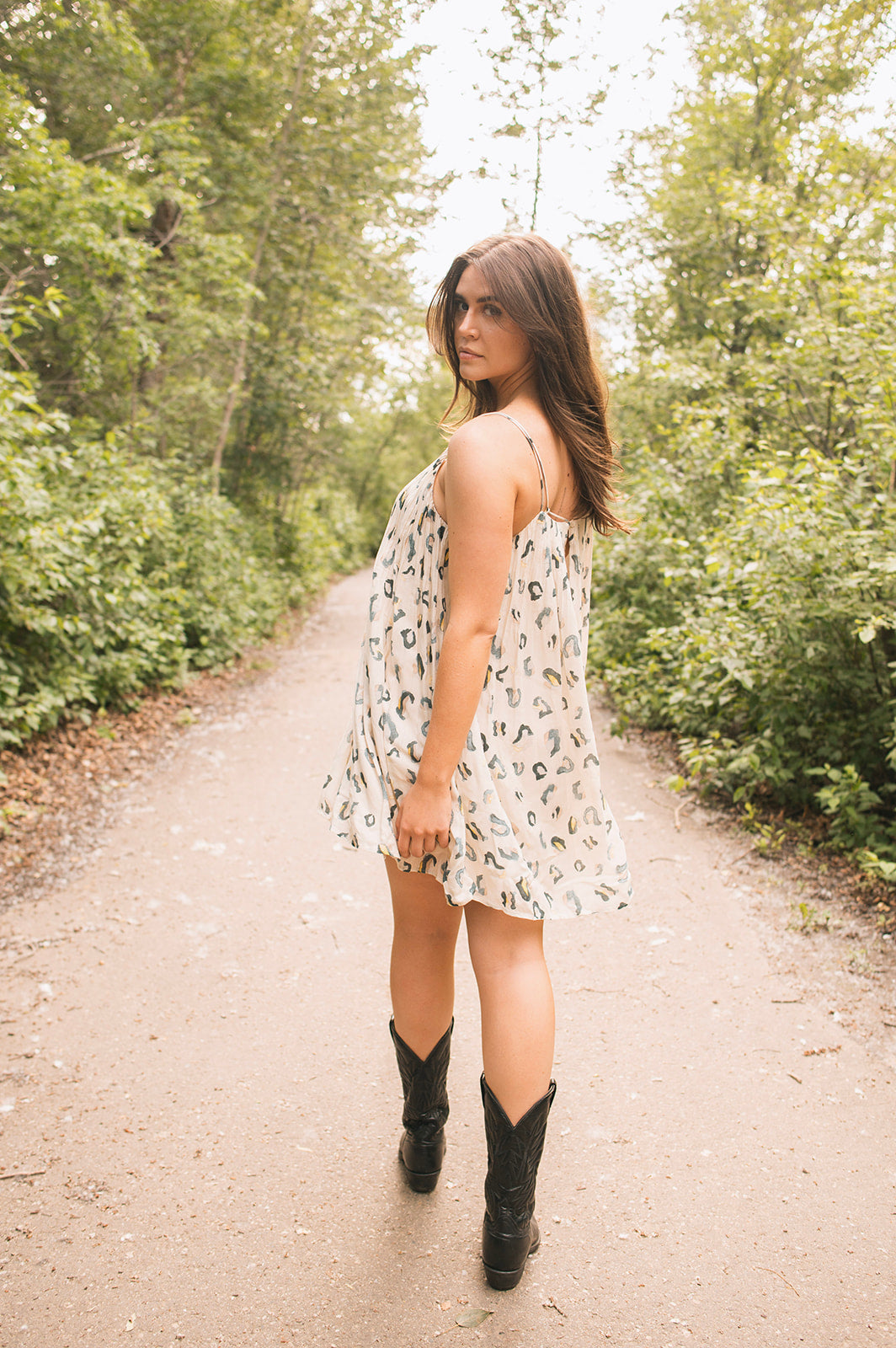 Take a walk on the wild side this summer with this mini! She's so flowy and perfect for those hot hot summer days. The neck detail and muted leopard print help her stand out from the crowd.