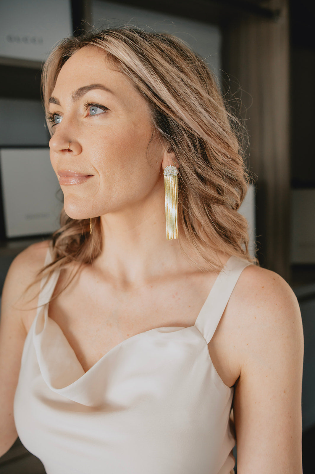 These beauties make a statement without screaming too loud. We LOVE the understated sexiness of the tassel paired with the half moon pavé tops. Dress up a graphic tee and denim or pair with something more formal on a night out!