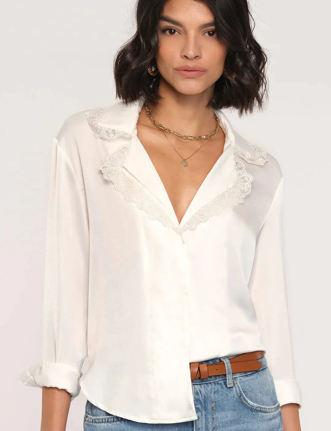 The Lorraine Top is a twist on a classic, perfect for the fall season. With its relaxed fit and lace panelling detail, it's the perfect top for enjoying the fall weather or meeting up for weekend brunch with the girls.