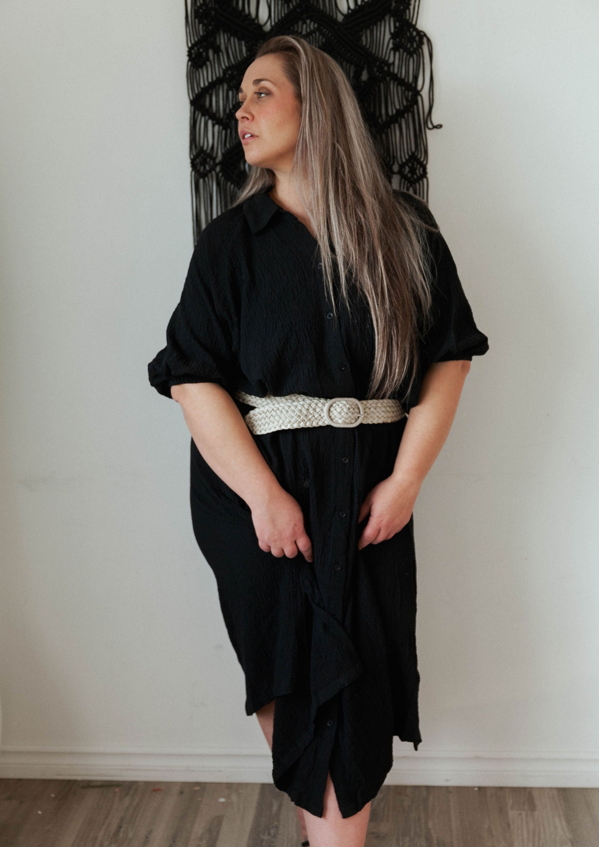 This beautiful braided belt can be worn at the hips or at the waist. Dress up a dress or skirt, or pair it with your denim!
