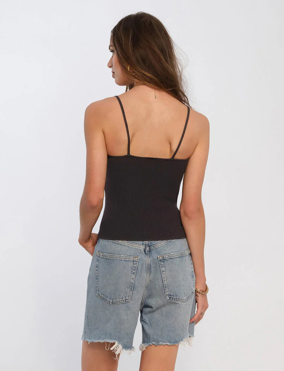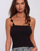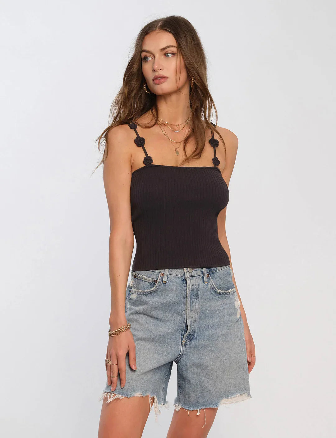 The Ravinia Cami is a dreamy, soft, and stretchy knit. A simple cami body with crocheted flowers along the straps, making it a summer favourite.