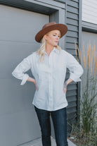 This beautiful long sleeve blouse is the perfect addition to any wardrobe. Dress is it up or down, with denim or tuck it into a skirt. Go from the office, to a date, to a lunch, to running errands.