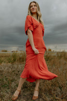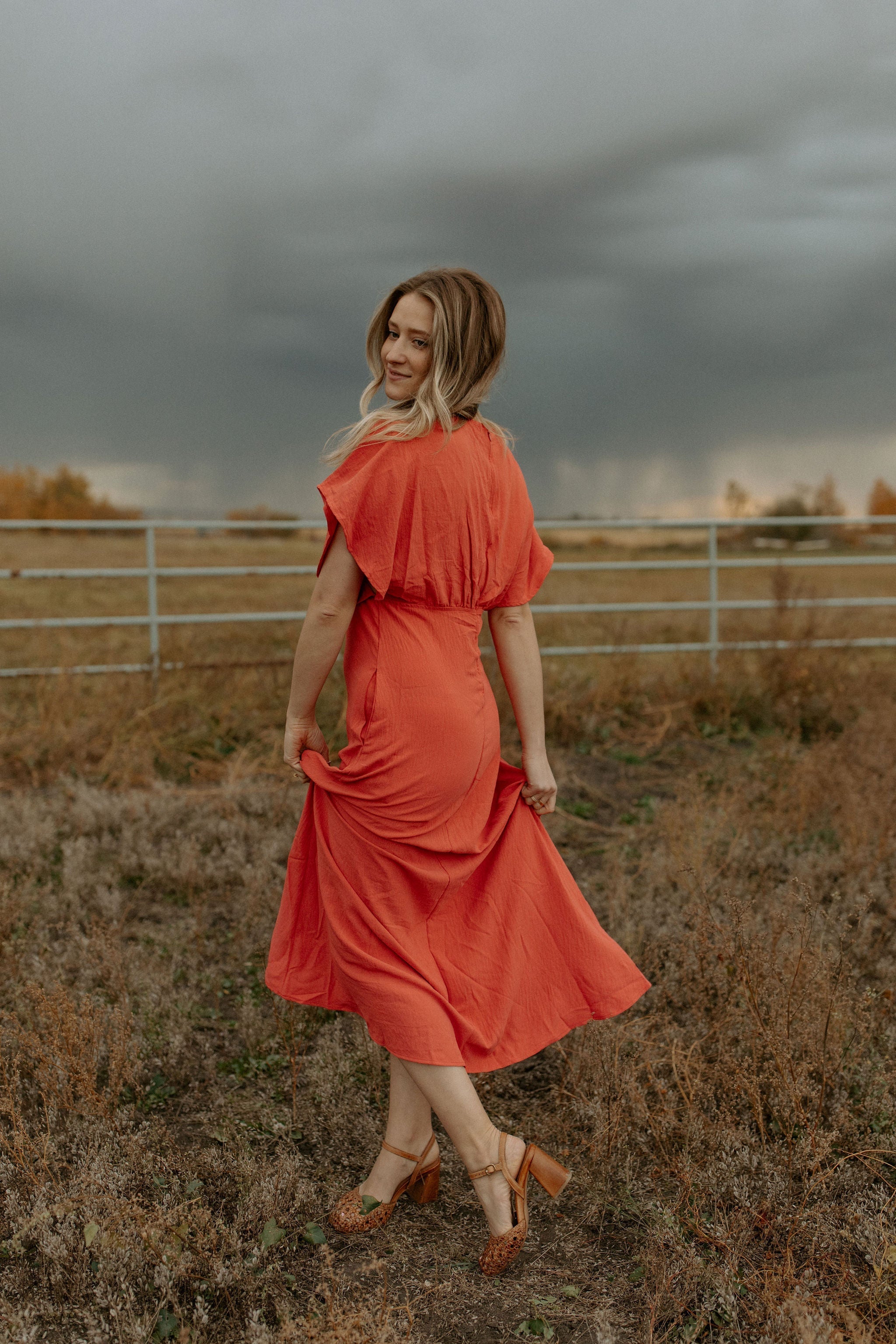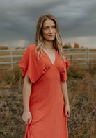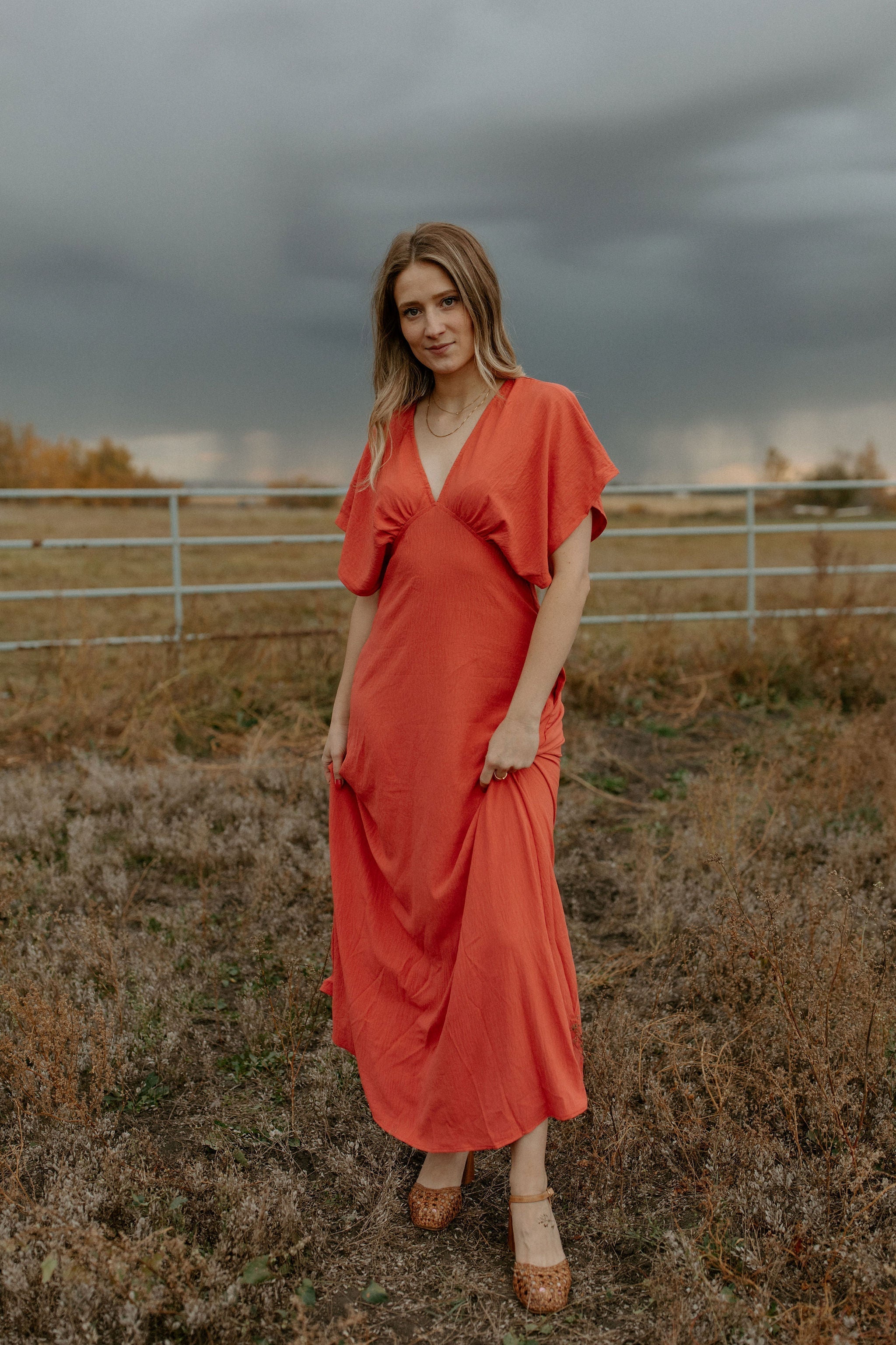 Gorgeous, lightweight and flowy. A long maxi length dress, with wide drop batwing style sleeves, and a deep v-neck.