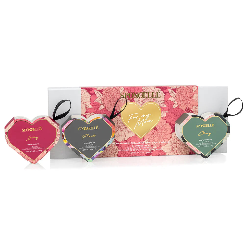 Pamper the mom in your life with our best-selling, heart-shaped For My Mom” Body Wash Infused Buffer® trio. This gift set expresses three sentiments that describe her well: proud, loving, and strong.