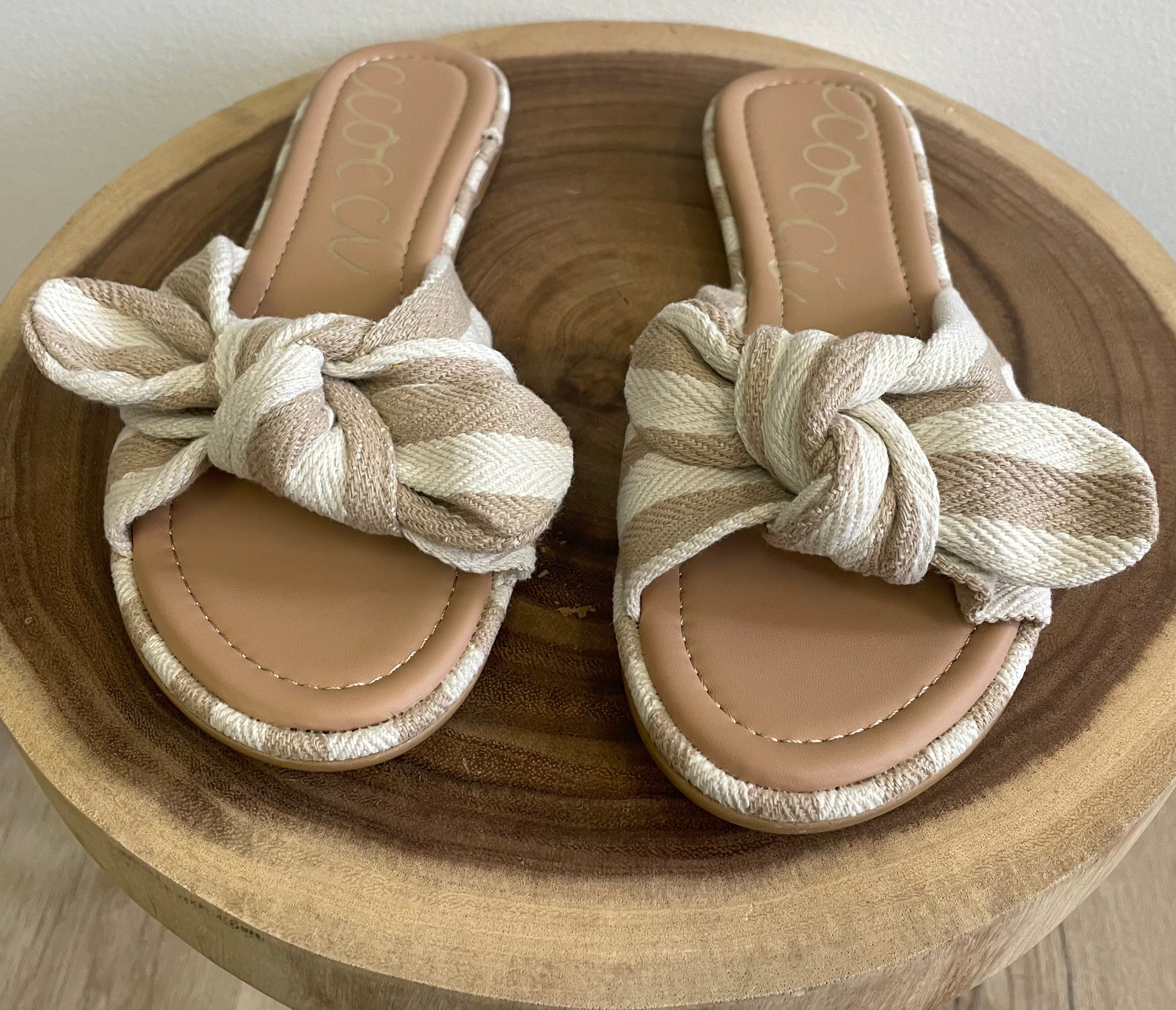 MISFIT The Rachael Striped Knot Slides - Taupe // Size 9