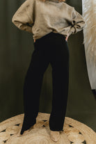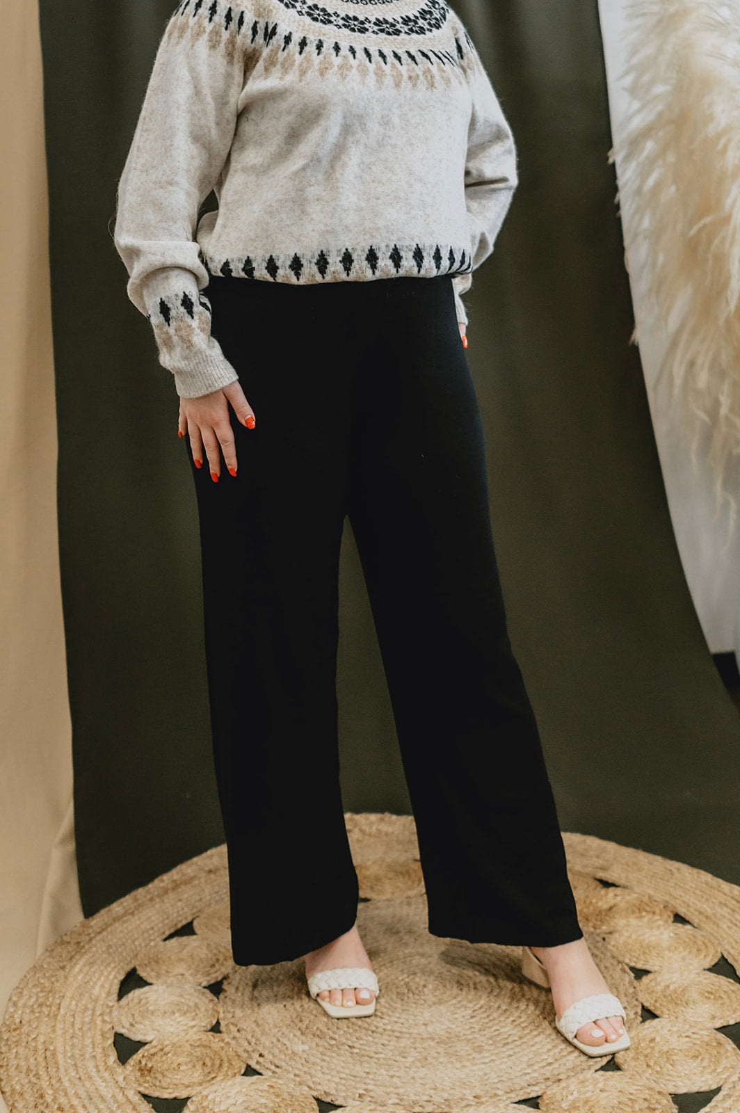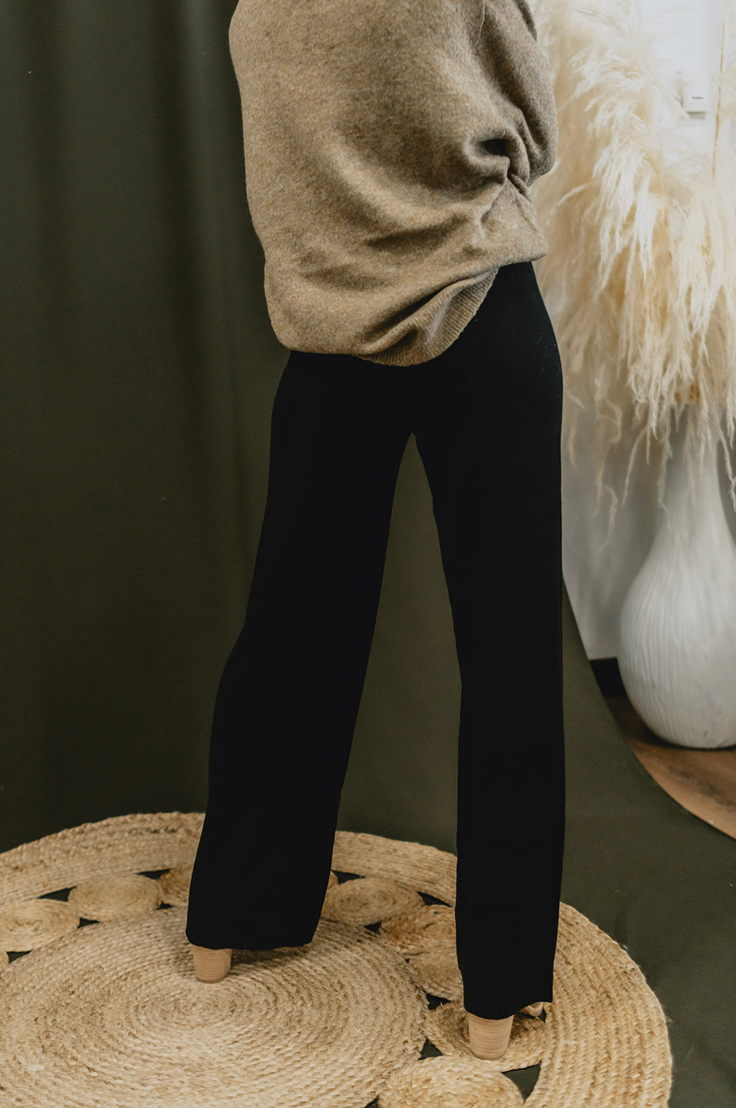 A lovely knitted wide leg trouser that goes from casual to dressy in a quick change of a top.