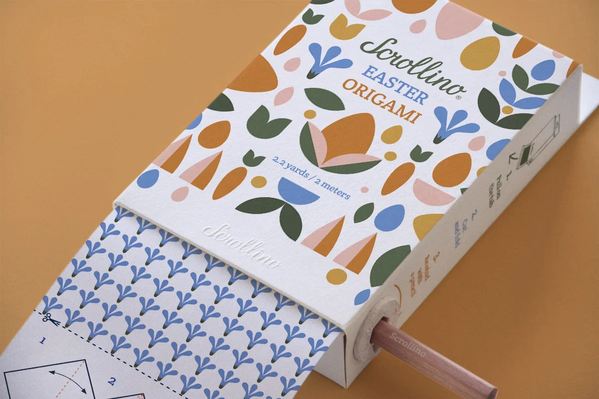 Based on our Bestselling product Scrollino ORIGAMI we're introducing a beautifully designed EASTER edition! This Original Origami kit includes everything you need to create nice Easter decorations, gift-wrapping accents, or party favours. Each kit comes with over 6 feet of origami paper, detailed folding instructions, and a variety of Easter patterns to choose from. Makes a perfect Easter basket stuffer or gift.