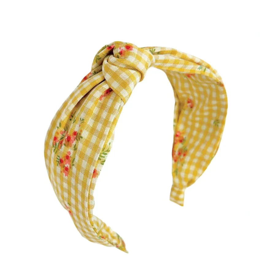 Add a country floral feel to your woodland walks with this wide knotted headband. Featuring a twisted knot and made in the gorgeous floral gingham fabric, this headband is made for a comfortable fit for little heads!