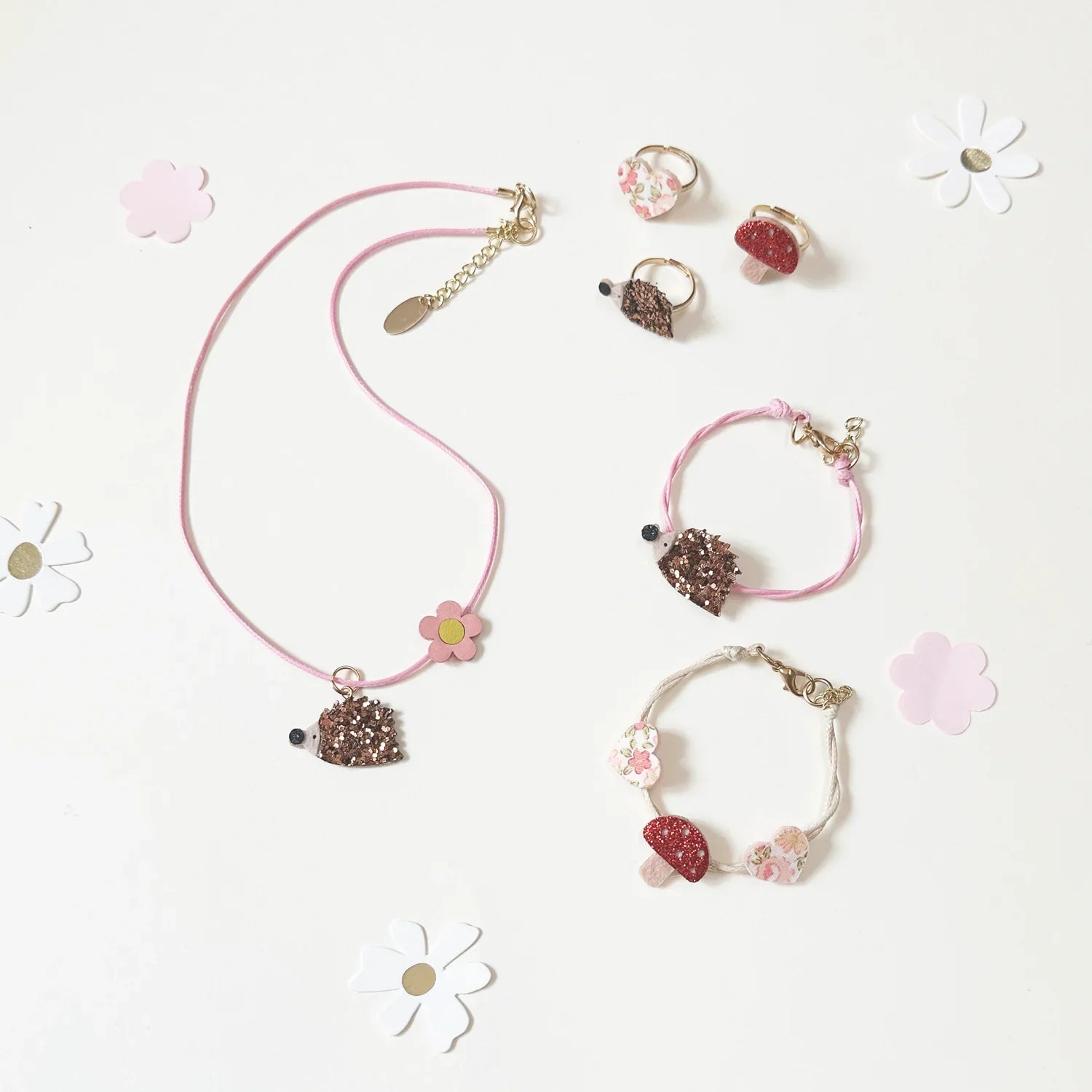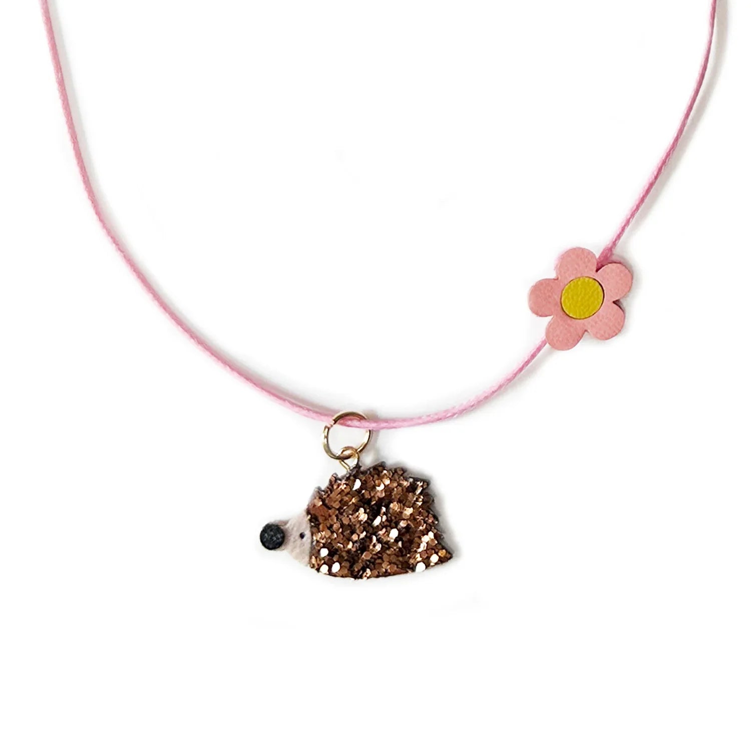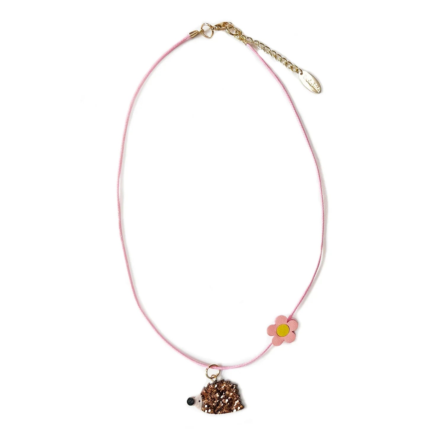 Perfect for nature lovers, our sweet Hattie hedgehog and tiny pink flower adorn this pale pink cord necklace. With a lobster clasp fastening and extender chain to ensure the perfect fit.