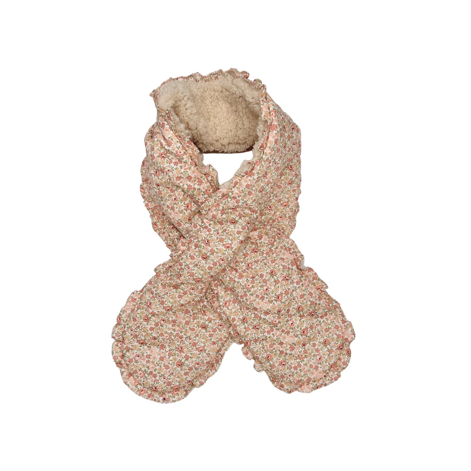 Wrap up warm this winter with the cosiest floral fabric scarf! Made from our sweet Margot floral quilted fabric and edged with a mini ruffle, this scarf is fully lined in teddy fleece for added warmth.