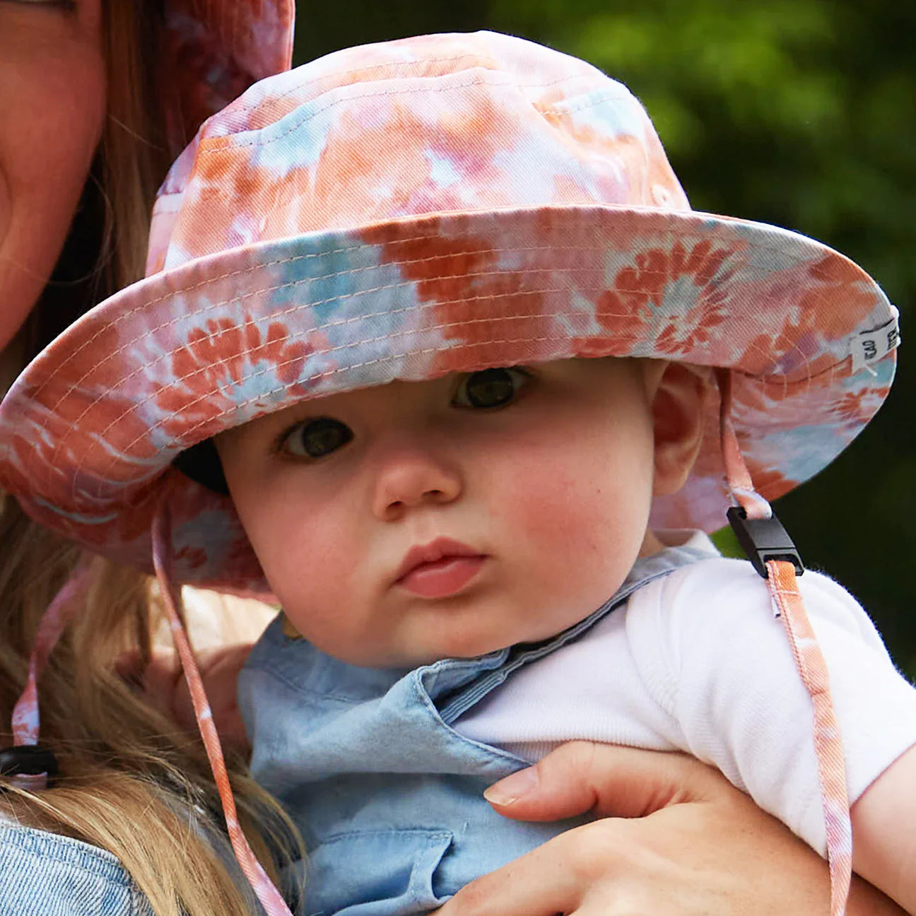 This bucket hat has a chin strap to keep it safe in place. Made with UPF50 fabric, it will keep your kid's head safe from the sun.