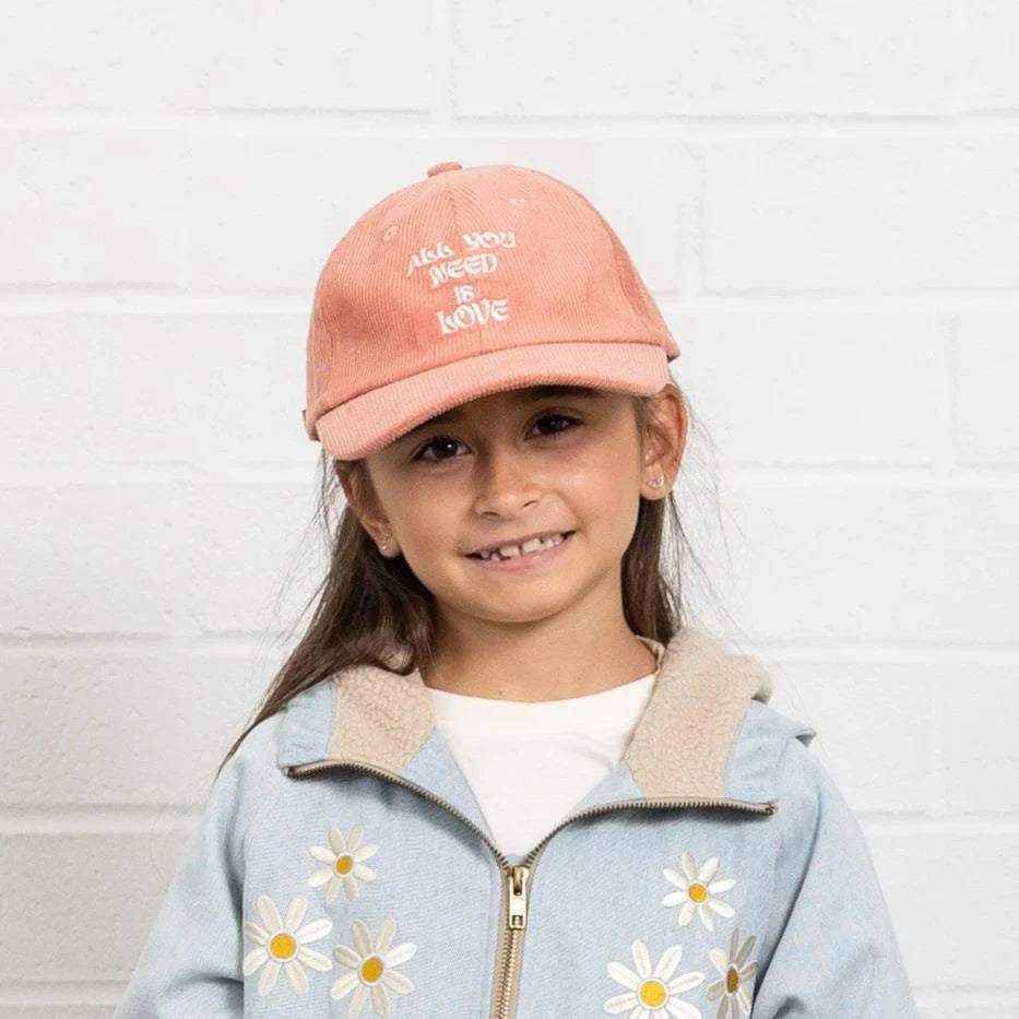 This six panel hat is made of a super soft corduroy, beautifully embroidered with "All You Need Is Love". Its retro style makes it cute and trendy for your little!