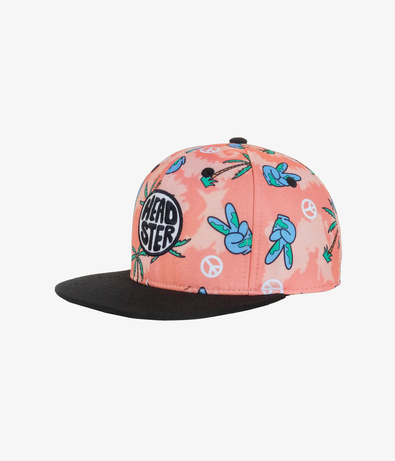 Saving the planet, one peace-sign at a time. Designed with kids in mind, our snapback features an adjustable snap closure to ensure a snug and secure fit. The distinctive hard crown and flat brim are the hallmarks of Headster Kids, offering long-lasting wear and serving as our signature style.