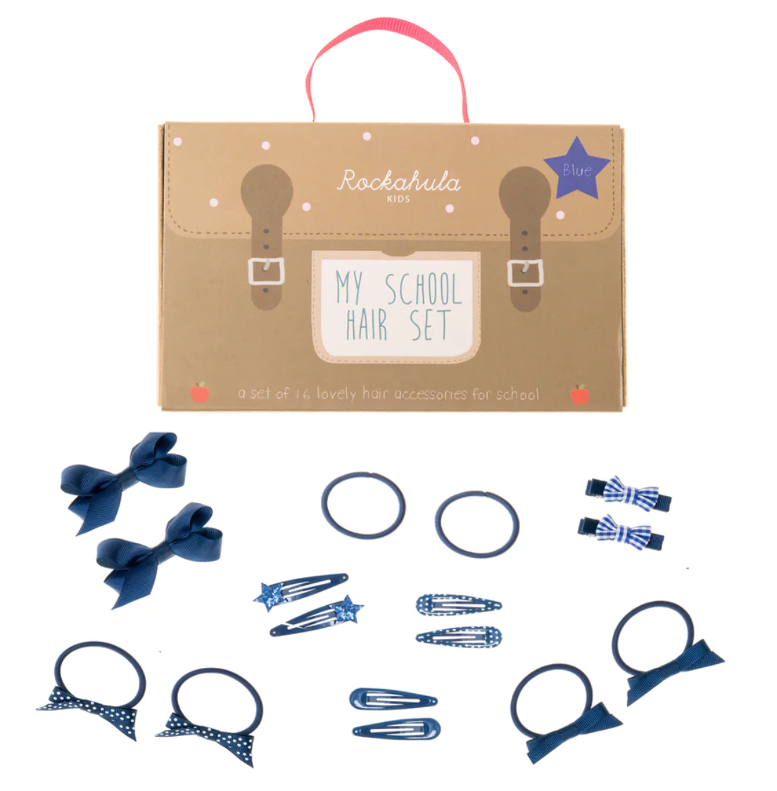Brilliantly practical and a really fun gift, this set of 16 assorted hair accessories covers all you'll need for school and more! They come in either red, blue or green, and are presented in a satchel printed gift box that can be kept to store them in.