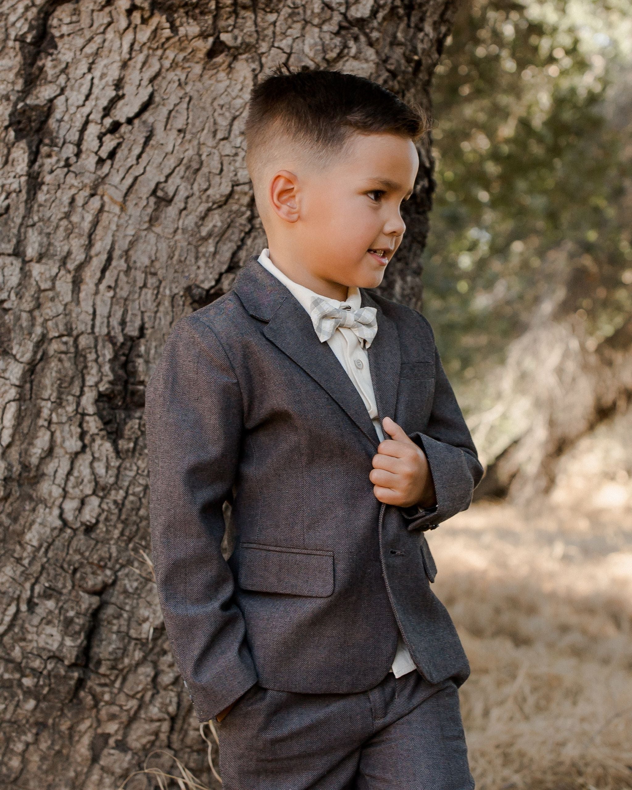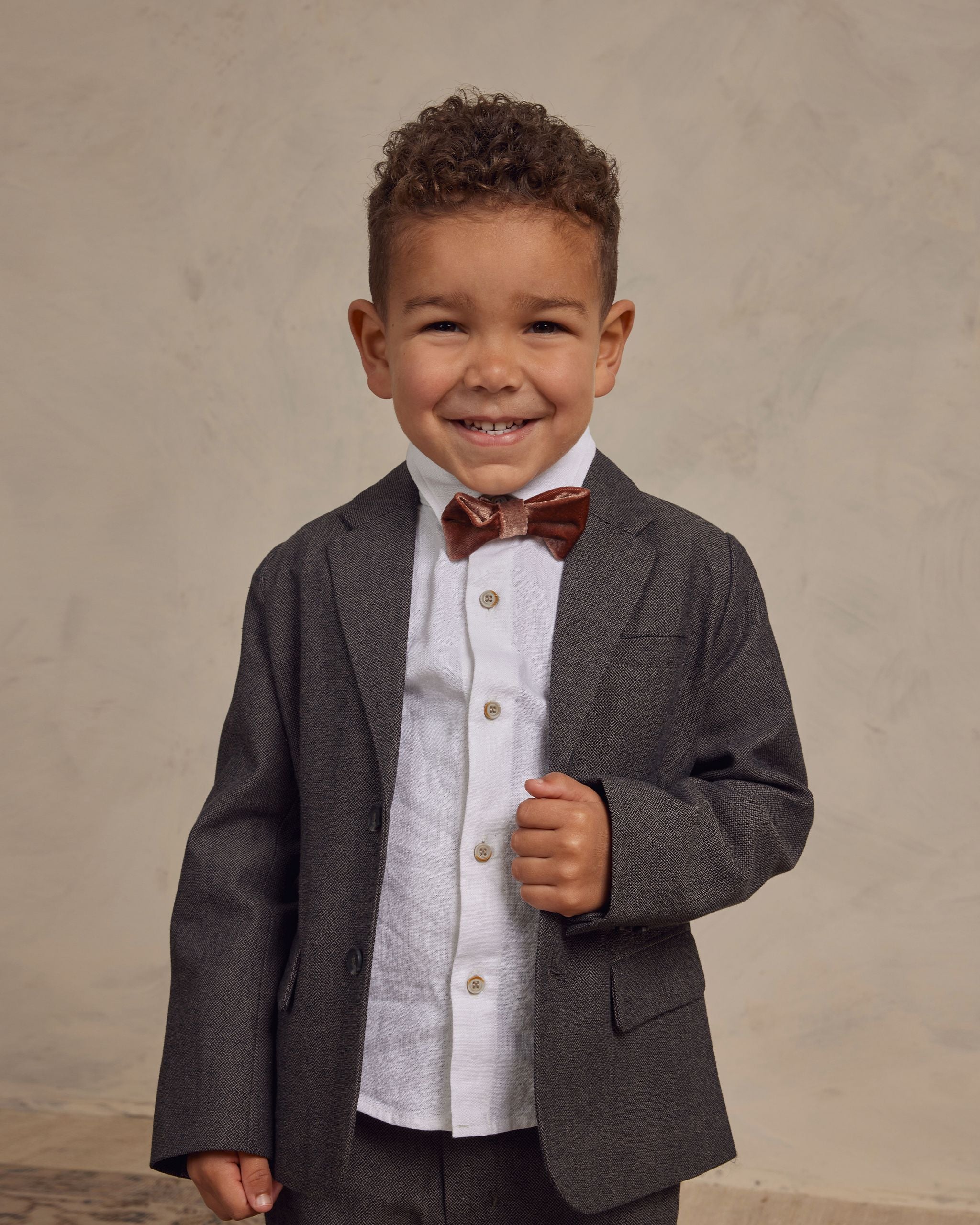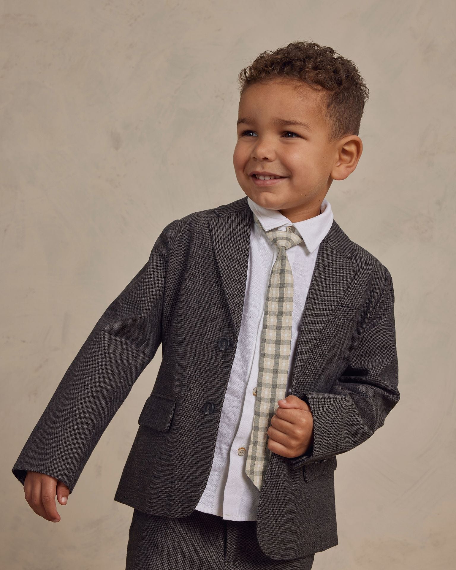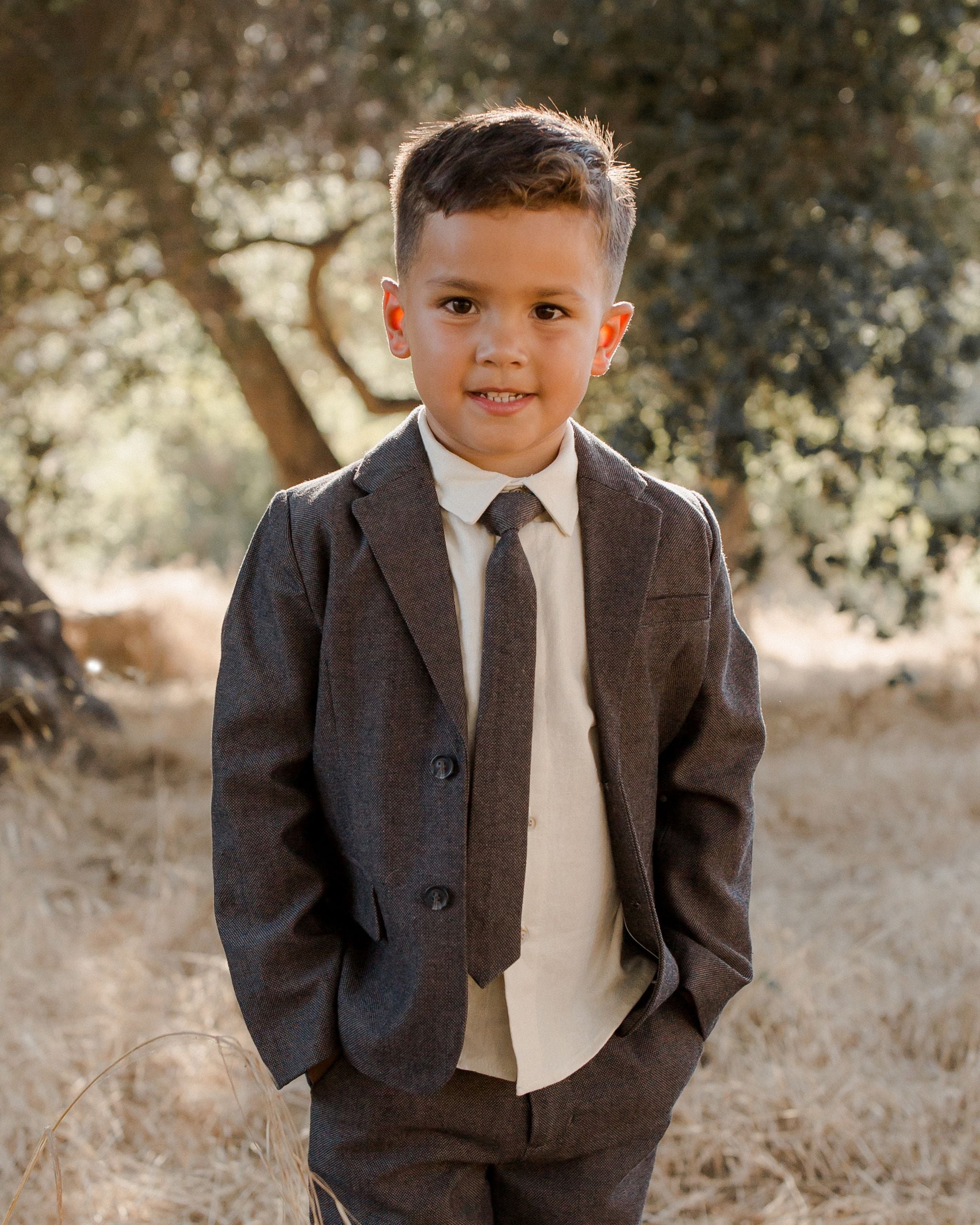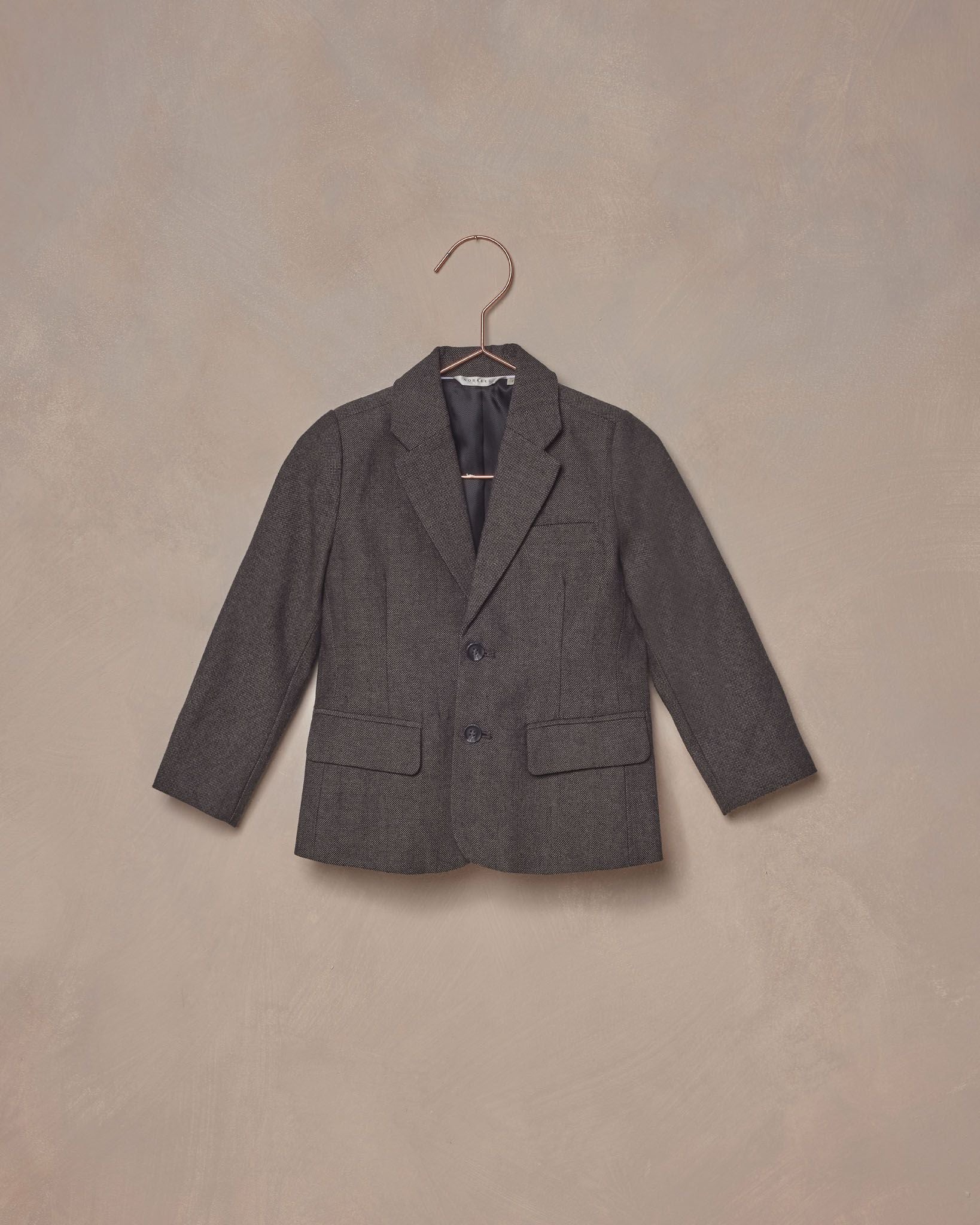 Single-breasted jacket in our soft cotton melange. Our linen colourway can be worn from season to season. Features notched lapels and tonal linen buttons at the front. Front pockets and vent at the back and fully lined. Featured in our 'heathered black' hue.