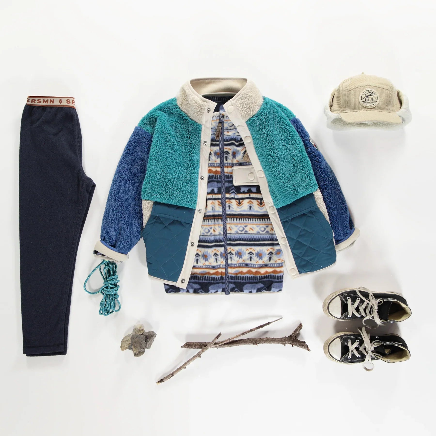 The Sherpa High Neck Jacket - Turquoise + Blue - KIDS