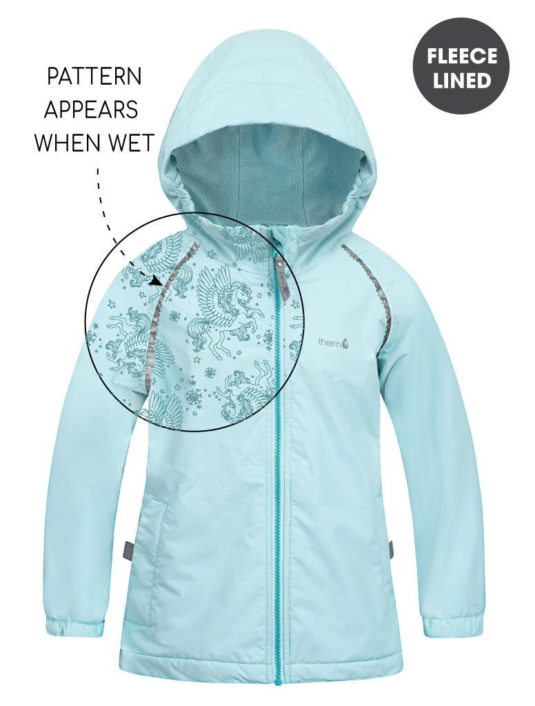 When the raincoat gets wet, a secret pattern is revealed! See the SplashMagic pattern appear in the rain then disappear again when dry. Fun for toddler and big kids alike! Providing full protection in both wind and rain, and lined with soft and cosy microfleece for warmth and comfort.