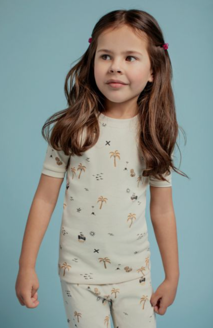 This PJ set will be a new favorite! Made from the softest and most flexible organic cotton rib, the set gives your little the freedom to run, sleep and play. The top has a rounded neckline while the pants have an elasticated waistband – all making getting ready for the day a bit quicker.