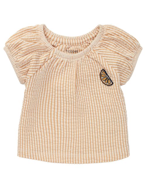 Cute and comfortable! The Alexandra shirt boasts some playful longitudinal stripes and short sleeves with a subtle puffed effect. The elasticated neckline and sleeve openings have resulted in extra comfort, plus they have made getting dressed and undressed easier too. This item of clothing won’t just allow you to make a sustainable choice for your child('s future), but also for our planet. It’s completely made from organic cotton. The production’s use of natural processes fully supports the health of the soil, ecosystems and people. And had we mentioned how deliciously soft it is?