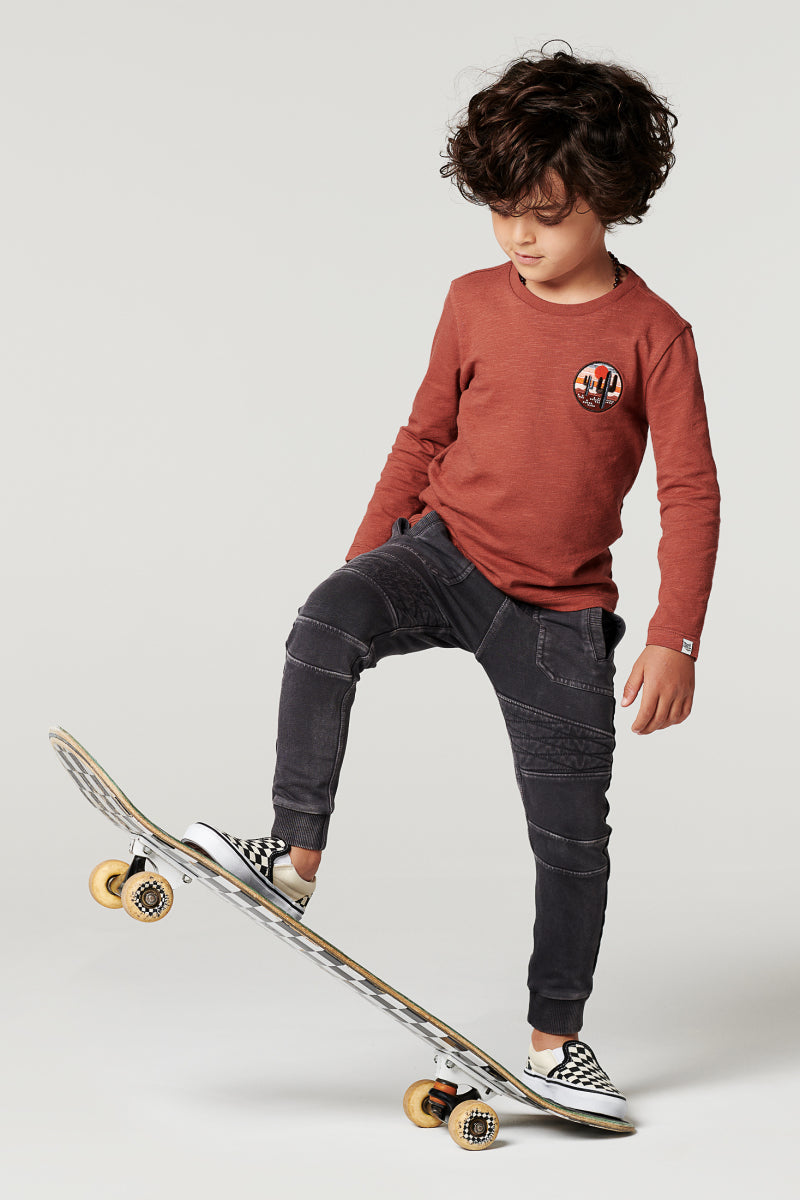 Your little one will be discovering the world in style in this cool long sleeve. The chest features an embroidered emblem of a deserted desert somewhere in the wild west. This long sleeve shirt’s colour is easy to combine with other colours. That will certainly save on a great deal of hassle in the mornings.