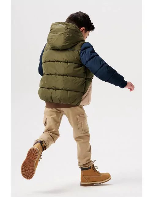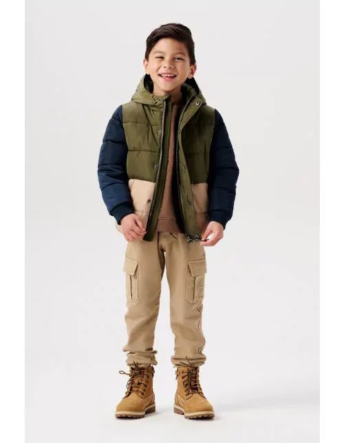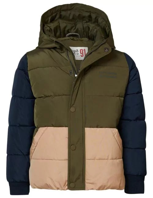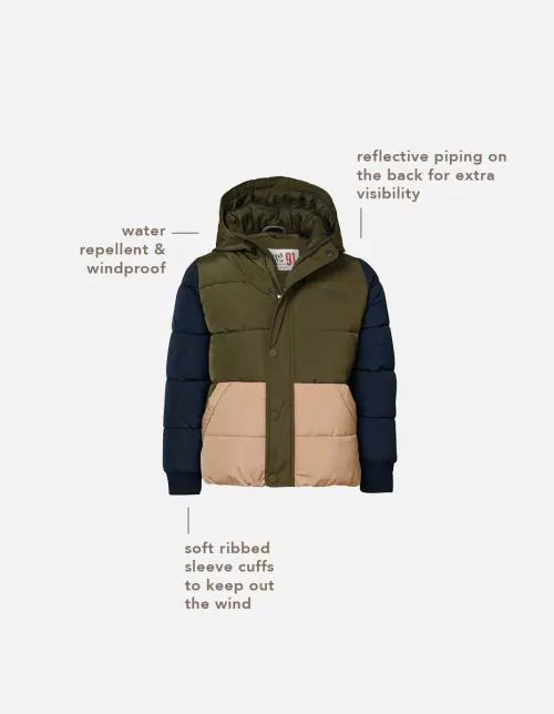 Sporty quilted colour block coat. The Weaver coat boasts a hood and fleece-lined pockets for extra warmth and comfort. The zip stopper will protect your little one’s skin. Your child can enjoy much greater visibility in the dark thanks to the reflective stripe on the back. A comforting thought. The elasticated hem and sleeve cuffs will provide effective protection against the wind and cold. This coat is both water-repellent and windproof. So your little one will also continue to feel lovely and warm in rainy and cold conditions.