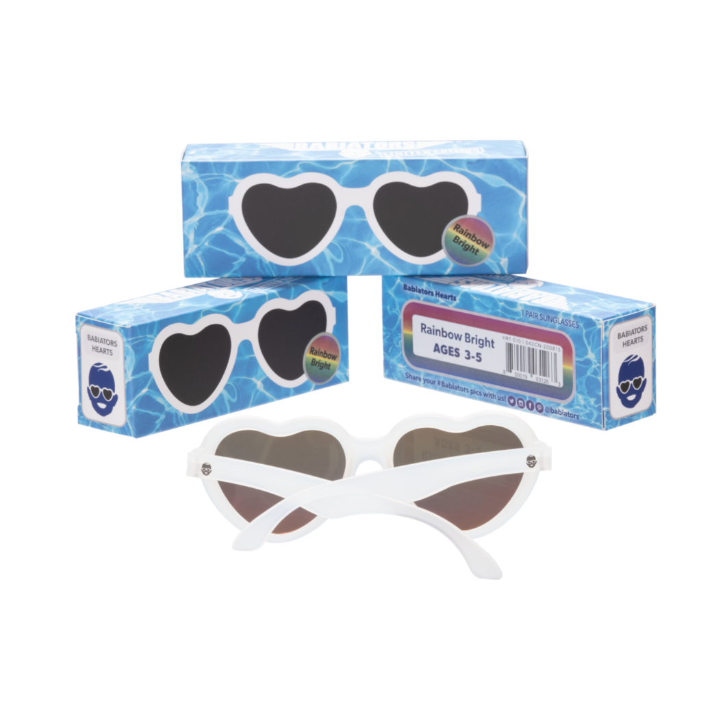 Our award-winning Babiators sunglasses for babies, toddlers and kids with 100% UV protection and flexible, durable frames. These heart shaped frames come in two sizes to fit kids ages 6 months to 5 years+!