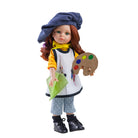 Christi is a 32 cm vinyl doll, redhead with a medium length hair. Her green eyes stand out on her sweet face full of freckles. Christi wears a artist bib, necktie, capri polka dot pants and a yellow top. Artist hat and palette.
