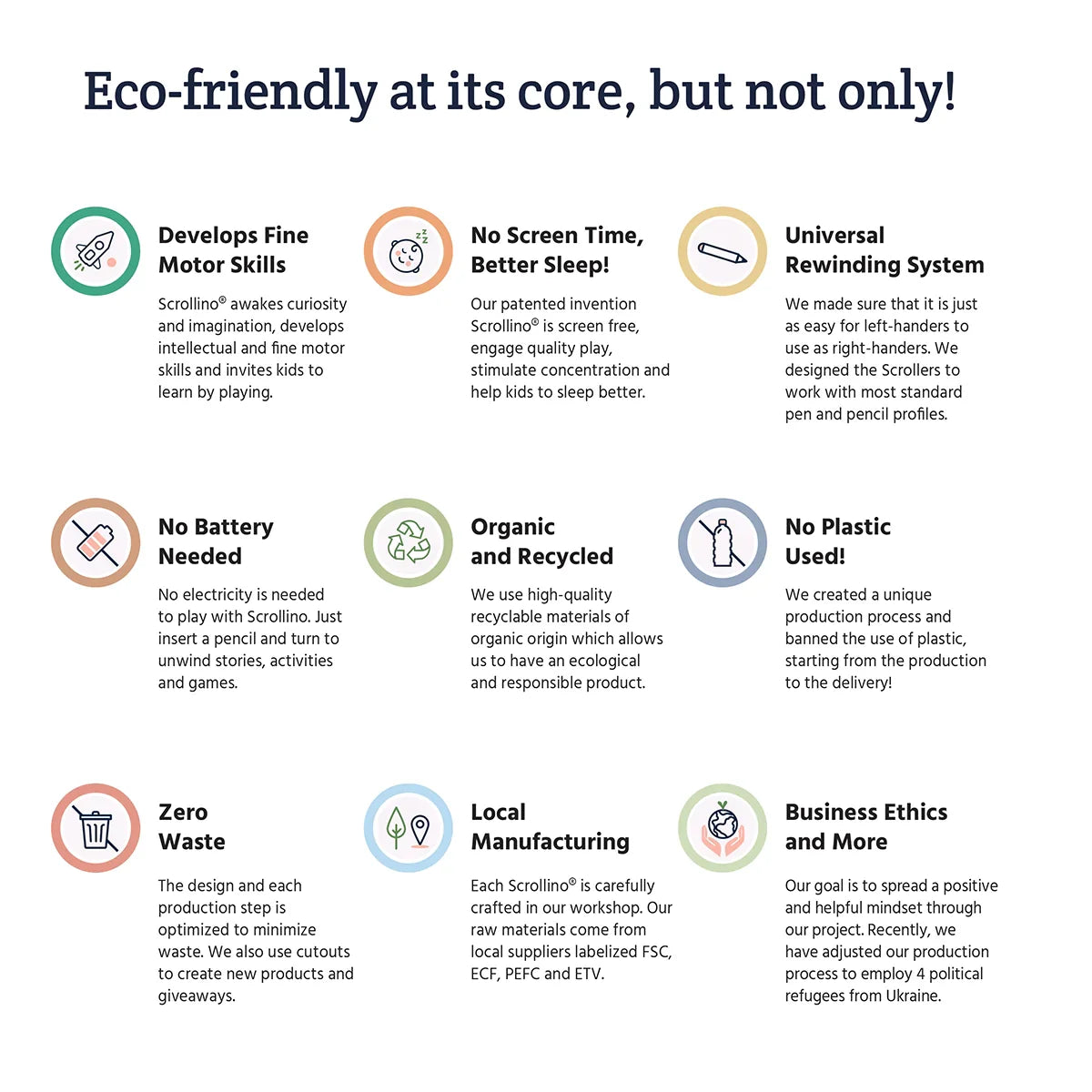 - Product Materials: Organic, Plastic-free, and Recycled