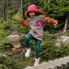 The elastic waist and ankles give it an original look while offering ease of movement to your mini! Notice the three little flowers at the bottom of the leg.