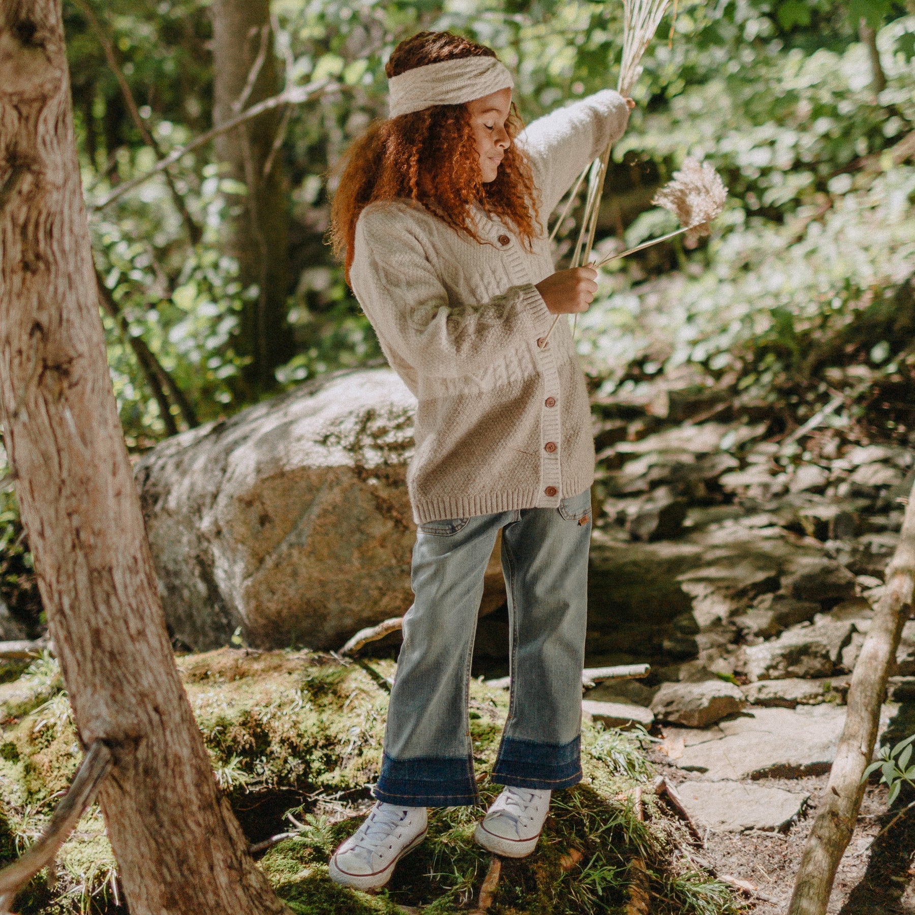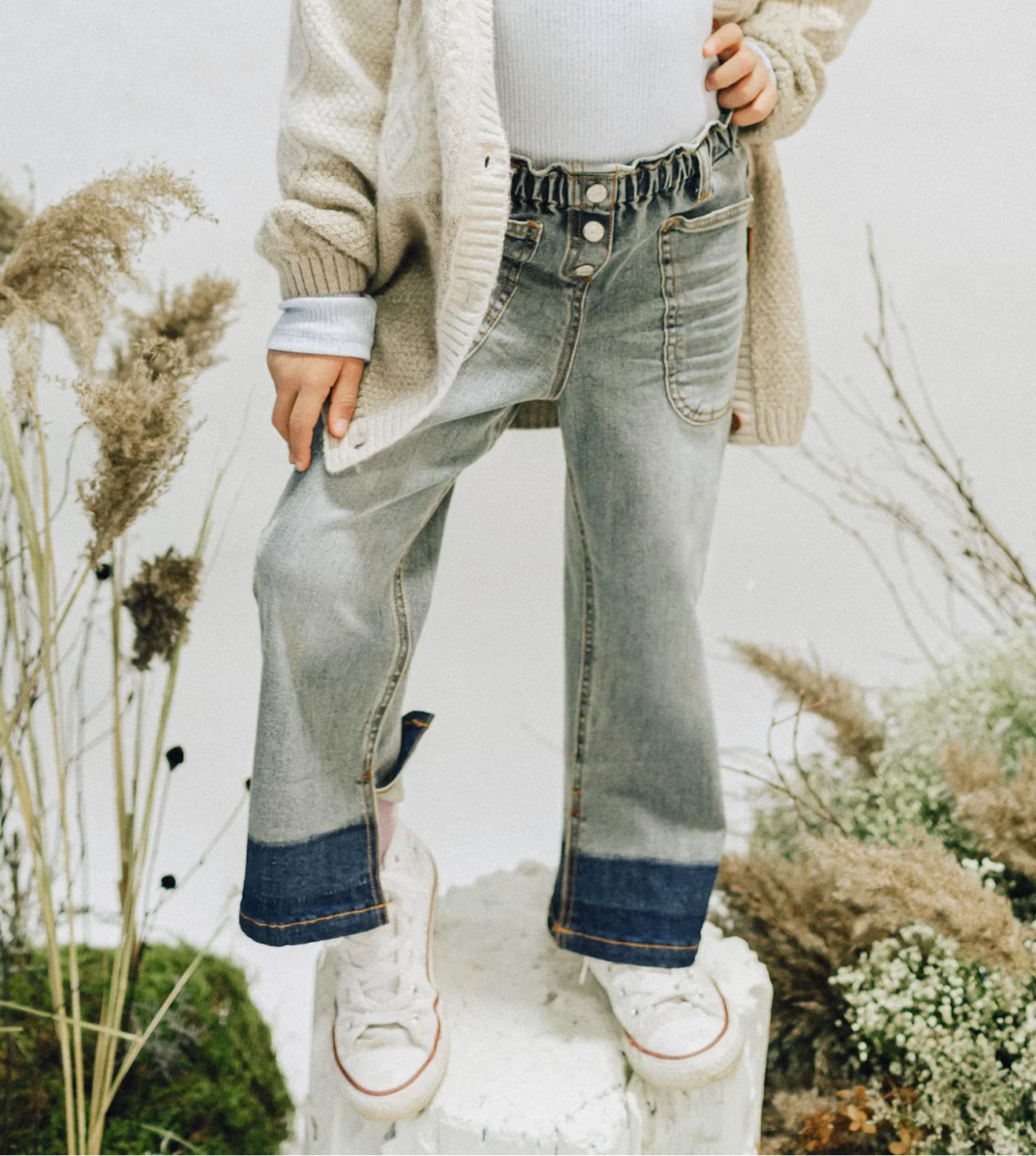 Here is a beautiful and original wide leg denim ultra comfortable thanks to its cut and its stretch fabric. Your mini will love this trendy style that will give her a nice retro look.