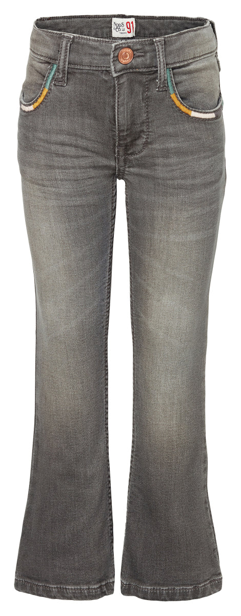 The Letta Jeans - Some flared jeans should also form an essential part of your little girl’s wardrobe too. This pair has been given a very cool washed effect too. These girls jeans from the Noppies Toddler collection feature pockets on the front and back. The jeans have an adjustable waist, making sure they will always fit perfectly. Nice detail: there is some coloured stitching along the pockets. The special washed effect has resulted in an extra cool look. Please note: make sure you wash this item separately once before use. This is because it may stain lighter materials to start with. Responsibly produced cotton has been used for these jeans - the Better Cotton Initiative - soft for your little one and much better for the environment too. A comforting thought. Everything in the Noppies Toddler collection can be combined, so you can easily allow your little one to put together her own outfit.