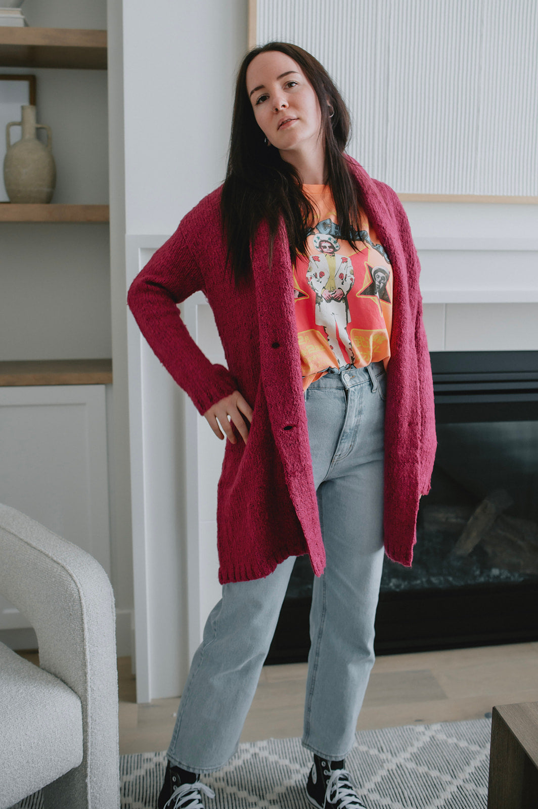 Bundled and busy! Our long sleeve Desreeny Sweater features two middle buttons and lays long. Wear over one of our dresses to instantly elevate the look!