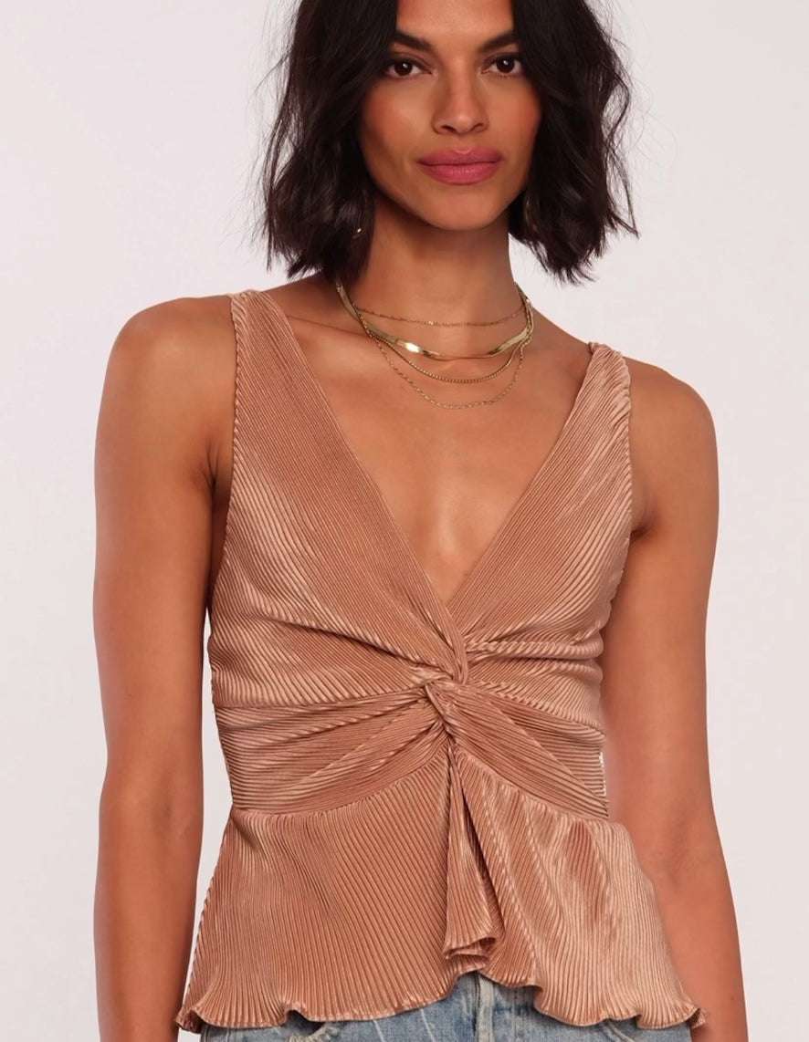 The Genevieve Top is a best seller perfect for date night. Made of cool to the touch tricot, it has a feminine twist front detail. Pair it with denim and your favourite heels for date night.