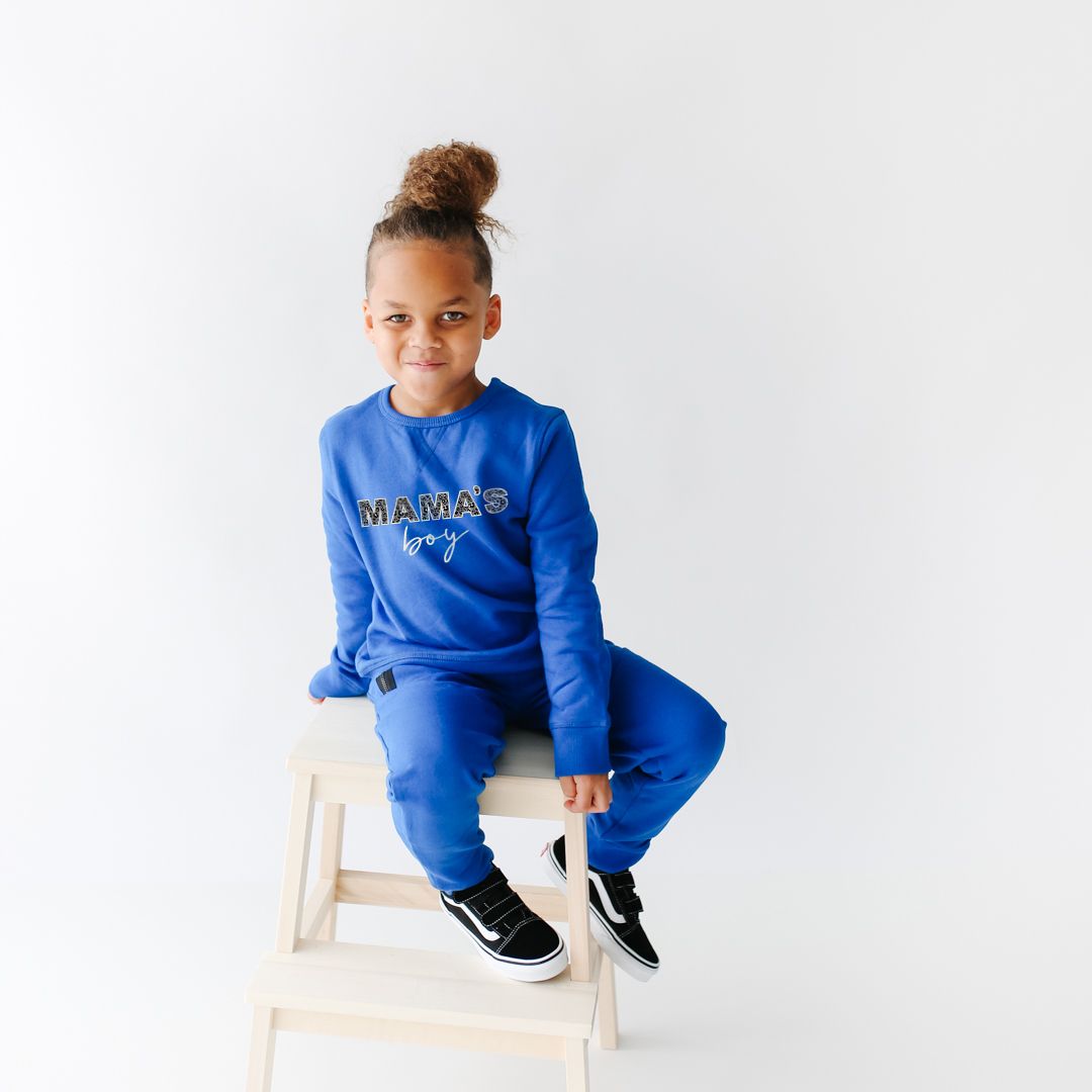 The Mama's Boy Sweatshirt - Cobalt + Leopard