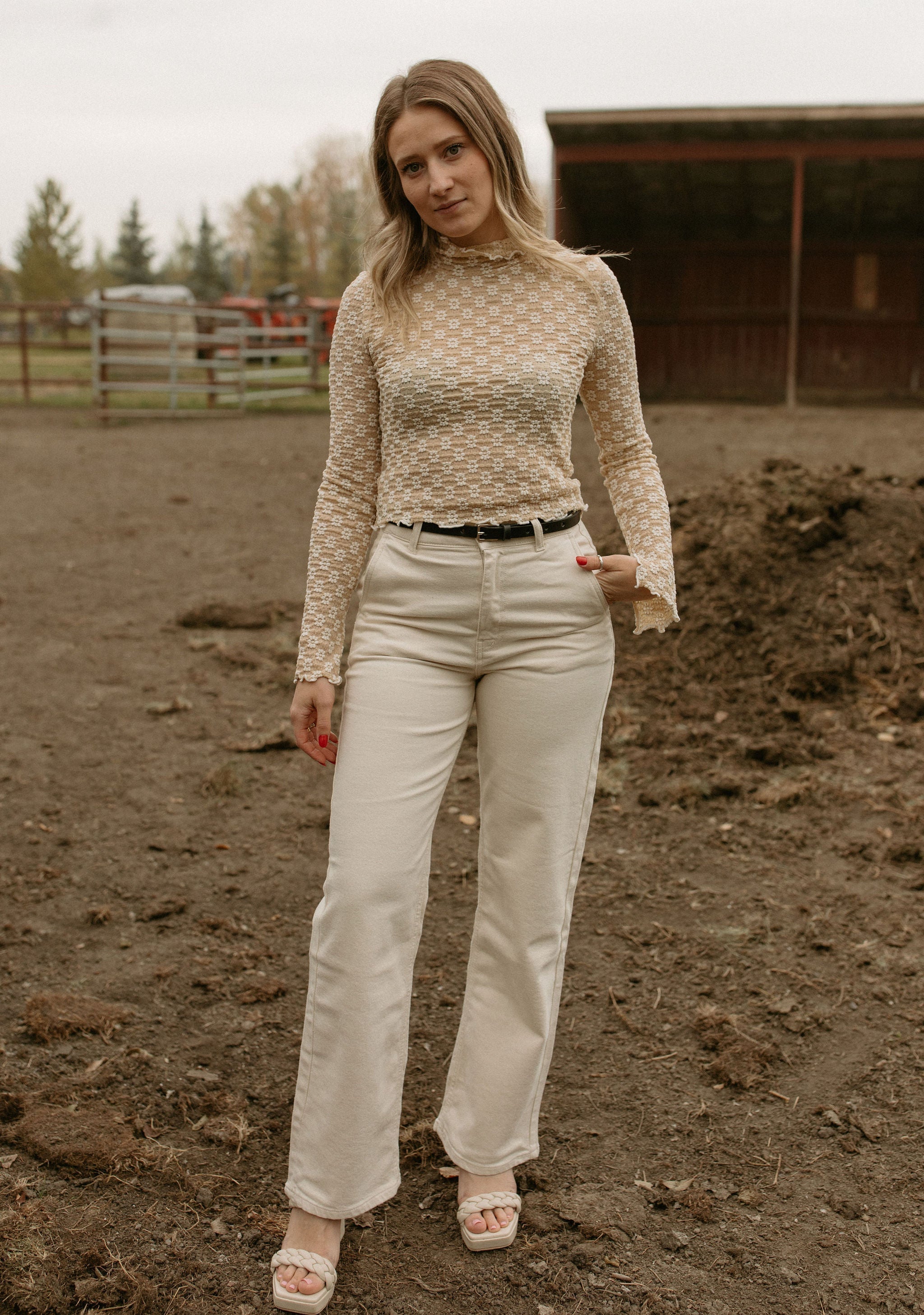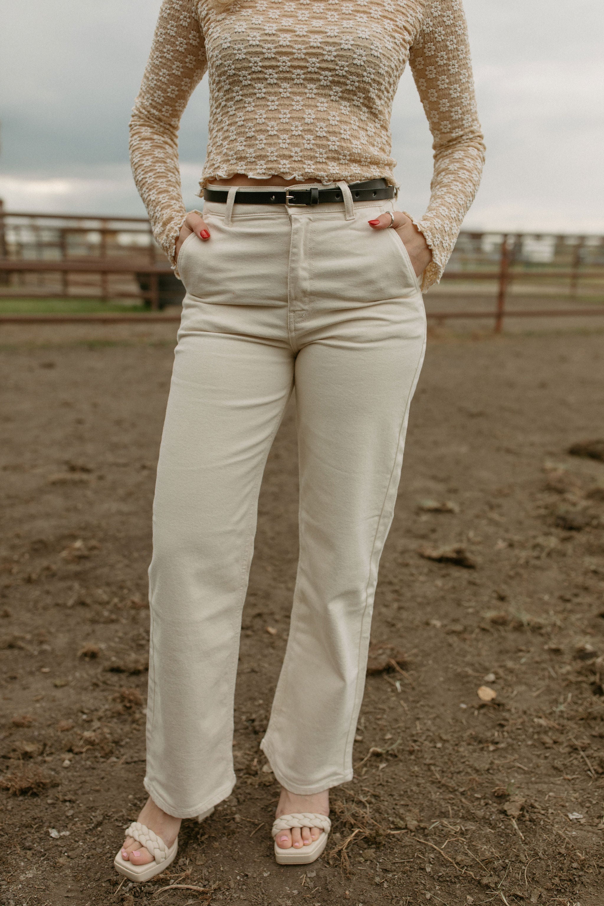 Looking for a perfect off-white natural looking denim? Look no further. She's soft, sturdy with a bit of stretch. Classy and modern. Plus She'll go with everything.