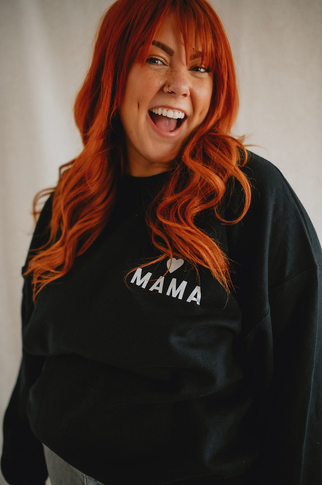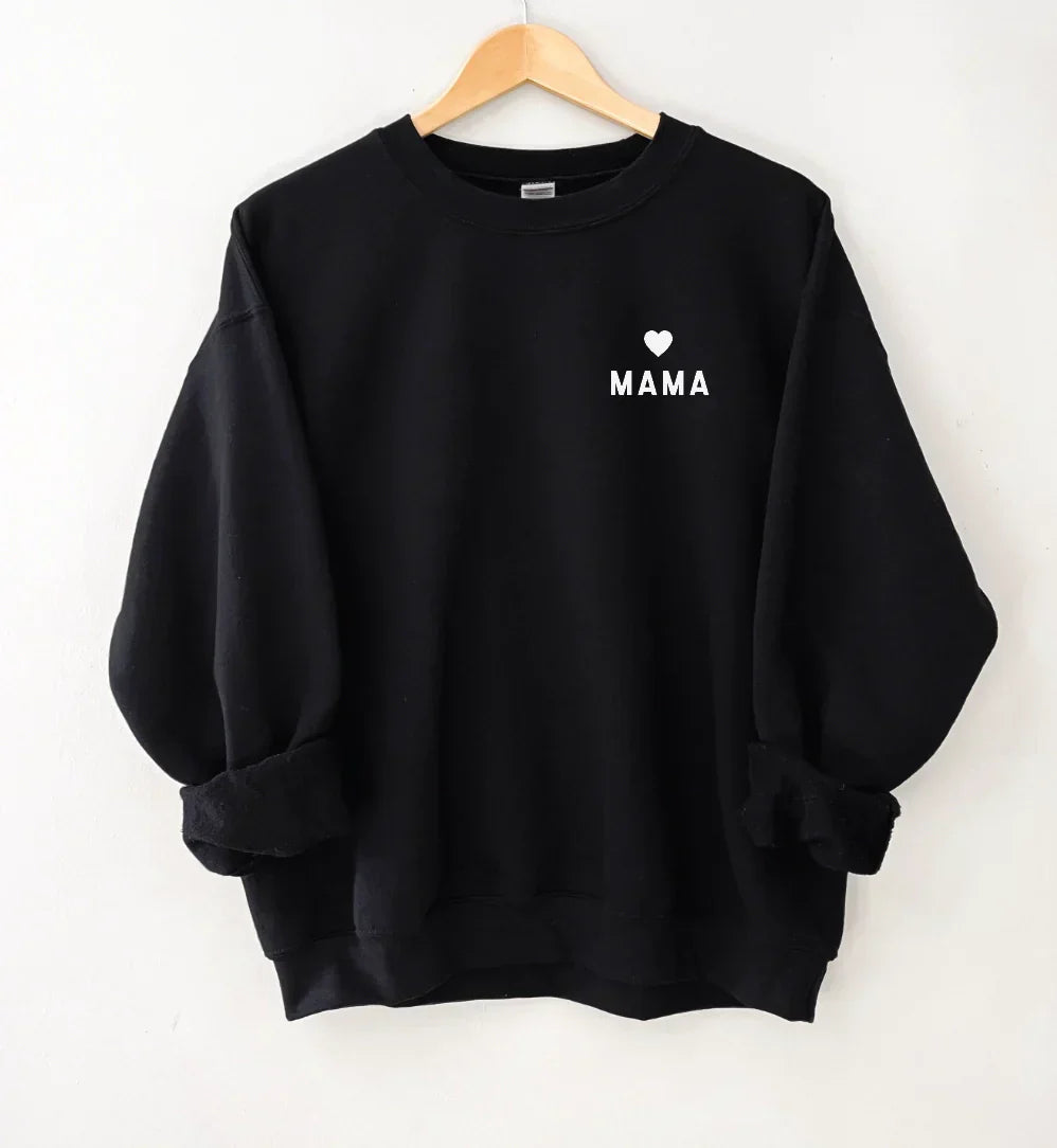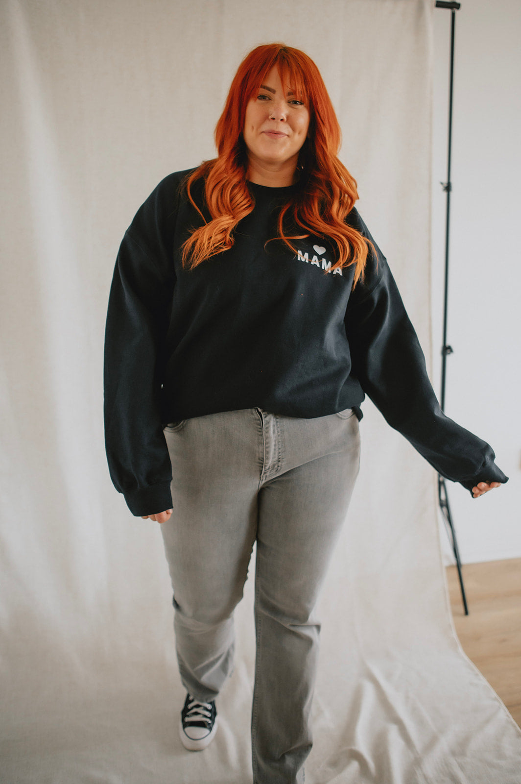 Calling all sweatshirt lovers! This heavyweight crew neck sweatshirt has a classic cut with long sleeves and a perfect relaxed/unisex feel. Finished off with the cutest Mama and heart graphic on the chest, this is a great gift for a Mama in your life or for yourself!